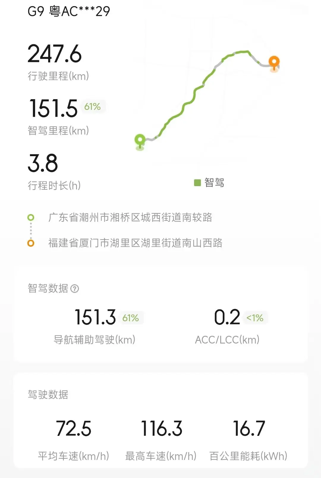 🌈第二站:潮州-》厦门,智驾61%,美好风景在路上