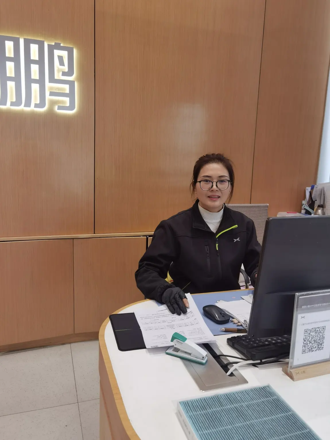 其实,一大早就有售后接待的小陈姐姐来电话,了解今天预约保养的情况。但见到真人,我还是很感慨: 小陈姐姐,美丽素雅,大大方方,举手投足,专业和逻辑性一点不输广州的专业人员。我不禁暗暗赞叹,为老家有这样优秀和美丽的小老乡而骄傲,也为小鹏汽车能有这样的员工而自豪。