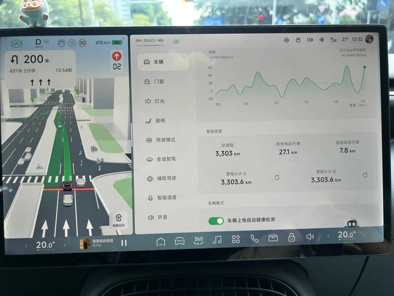 车子颜值是很满意的,当时冲着空间(超顶的的得房率)、驾控感受、氛围灯质感、前后排都有座椅按摩、通风、加热、电吸门,还有智驾。5000的权益包额外加1000升级了20寸熏黑轮毂和米其林胎。