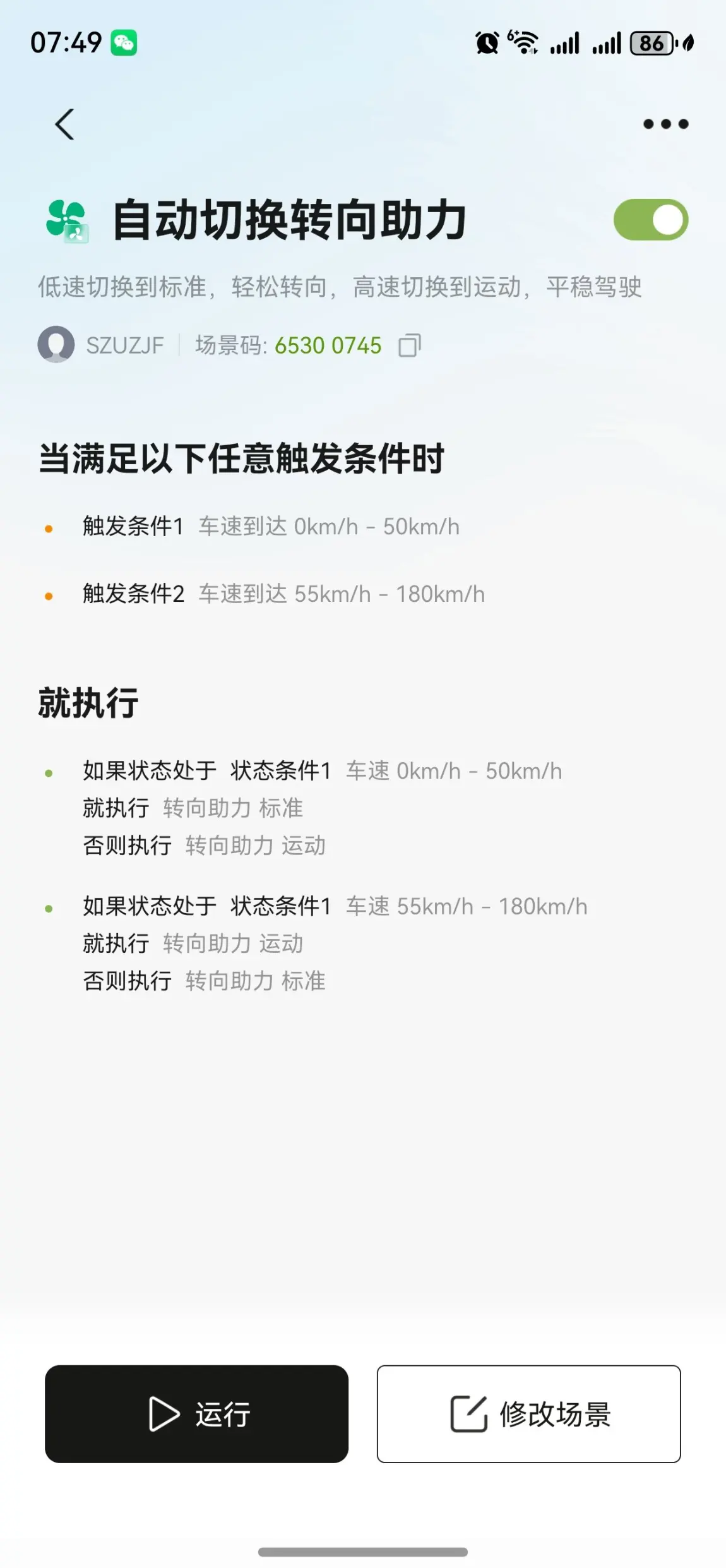 我编辑了这个智慧场场,但不知为什么,我的这个智慧场景好像不会执行,查看转向助力界面没有变化。