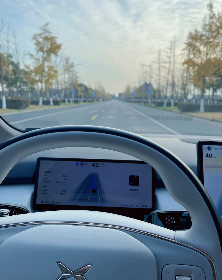 沿崧泽高架转淀山湖大道向西,冬日清晨的车流格外顺畅,小鹏P7+的XNGP智能辅助驾驶全程在线,不仅能自动跟车、平稳变道,遇到弯道、坡道时,还会实时弹出路况提醒,“前方200米连续弯道,请注意减速”的语音播报,让带娃自驾的安全感拉满。