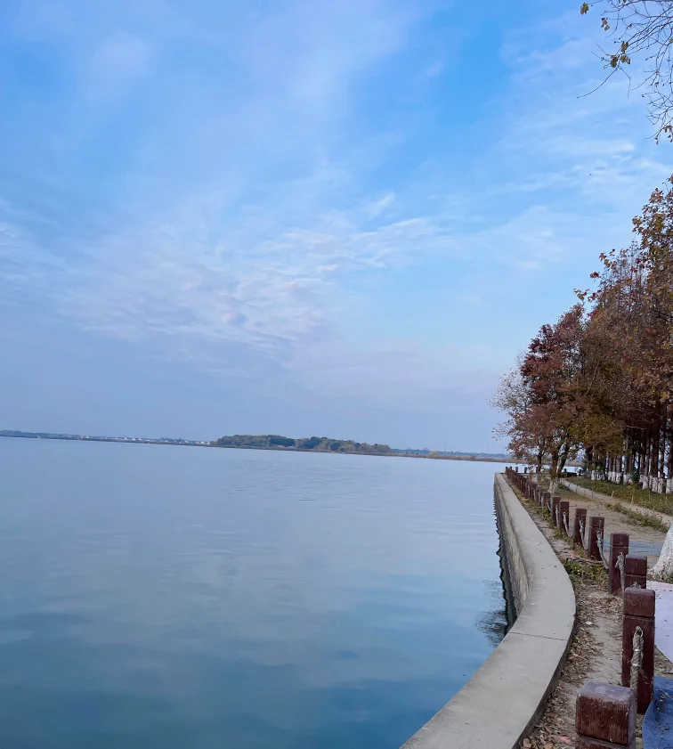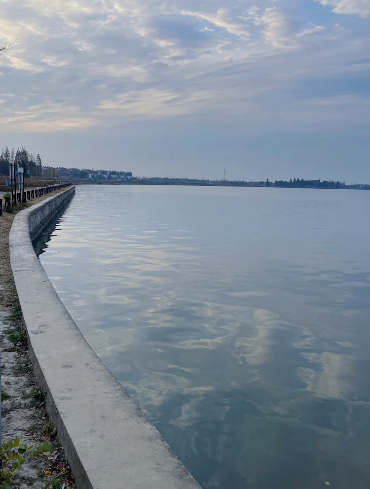 第一站直奔淀山湖半马草坪,冬日的湖面褪去了春夏的热闹,晨雾缭绕中,湖水如一块冻透的碧玉,岸边的芦苇荡泛着浅黄,随风摇曳出细碎的声响,阳光穿透薄雾洒在湖面,波光粼粼如撒了碎金。