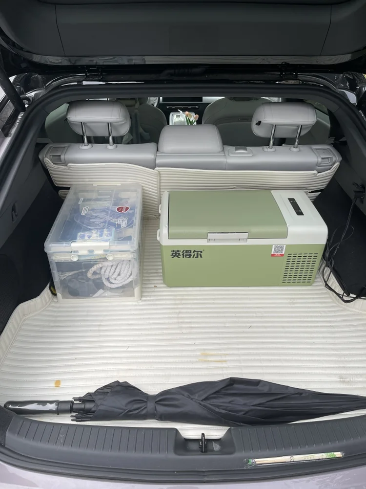 玩累了回到P7+里,开启座椅加热,从小鹏商城购买的车载冷暖冰箱里拿出温好的牛奶和零食,宽敞的二排成了闺女的临时小窝,伴着窗外的湖光小憩,片刻便满血复活。