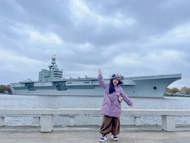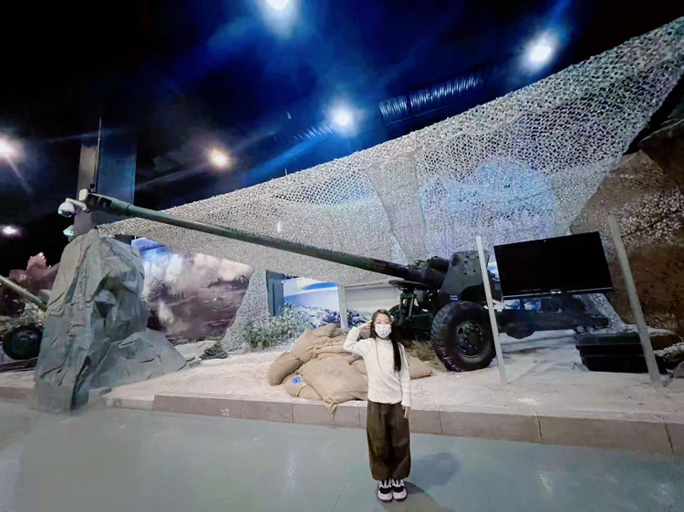 仿真航母在冬日暖阳下格外巍峨,曾承载无数孩子的军事梦想;退役的高射炮静静伫立,厚重的车轮碾过岁月的痕迹,墨绿色的车身泛着沉稳的光泽。