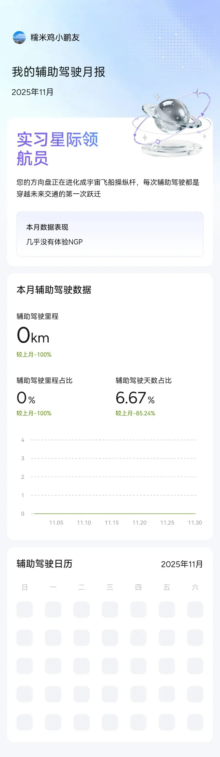 4,11月27日,二次提车,整个月没怎么开,后台数据统计基本没啥。但也不阻碍我活跃于鹏友圈,创作,购物,消费,积累!