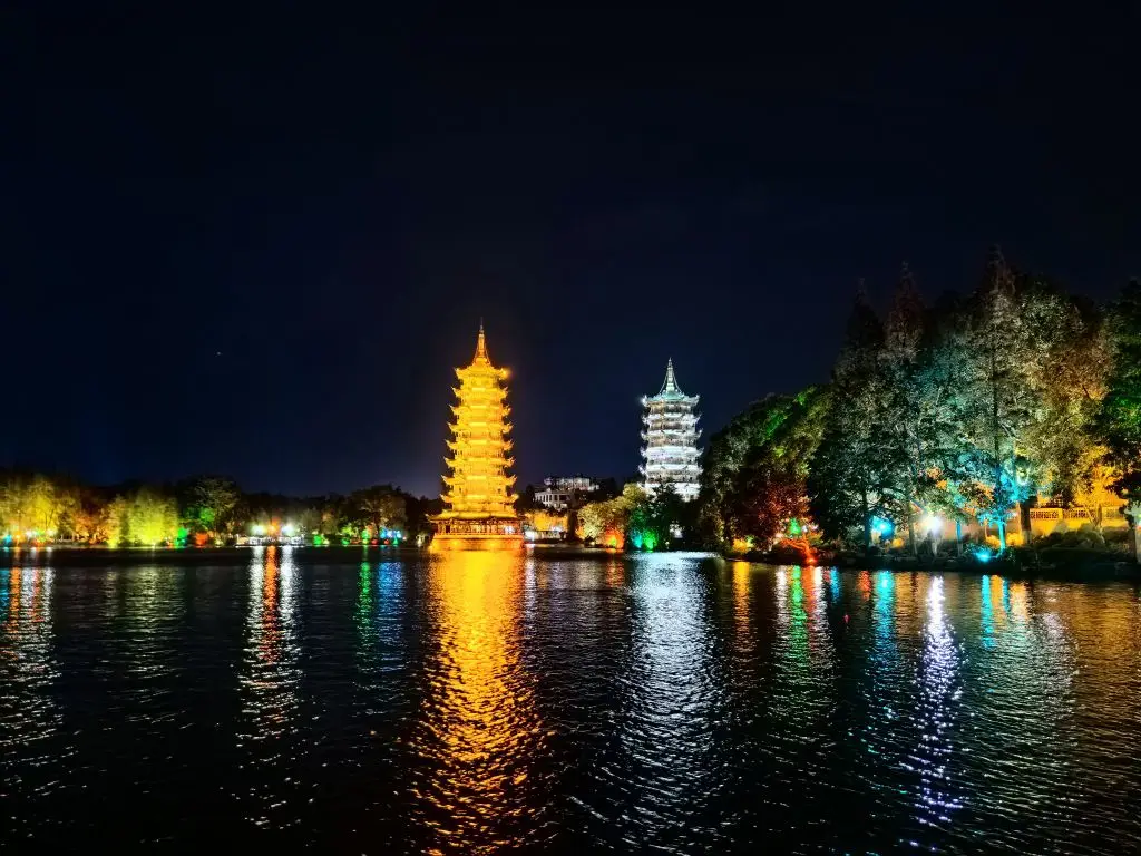 第一天:南昌到桂林。晚上去看了美丽的日月塔。也尝了地道桂林啤酒鱼。