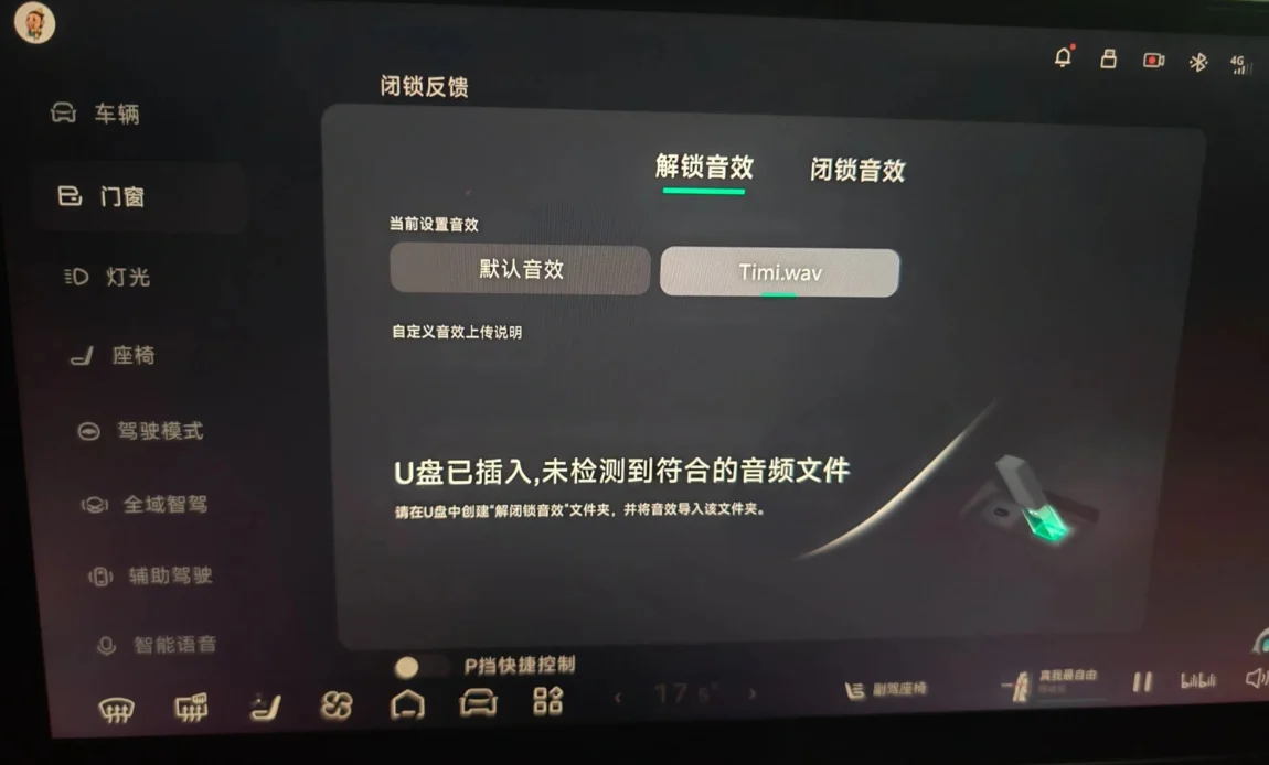 当然作为一个奶爸,回家锁车时必须得配上小黄人那可爱的声调,和我们互说“拜拜”,仪式感方面必须拉满。过早的拔出U盘会导致音效导入失败。