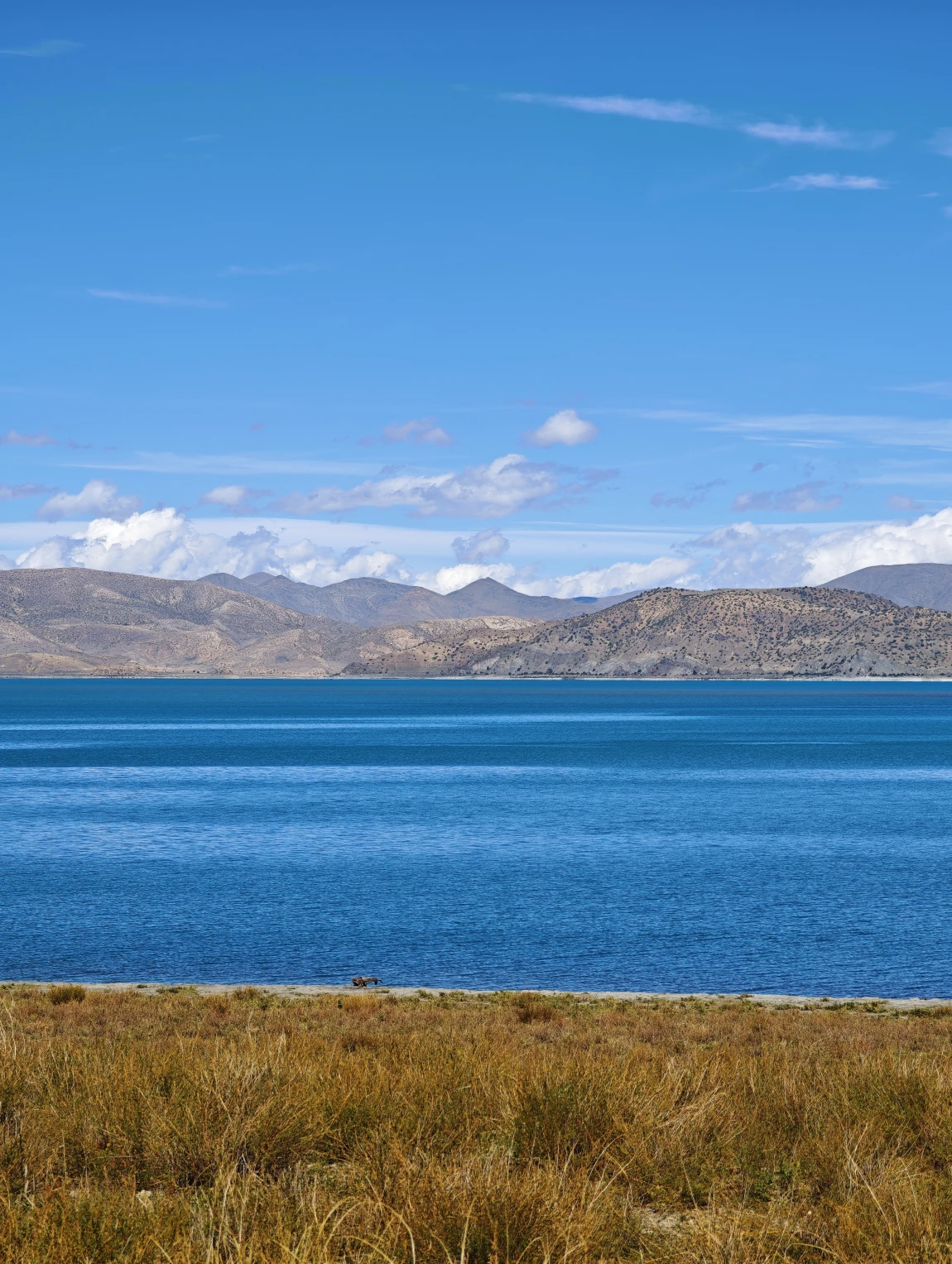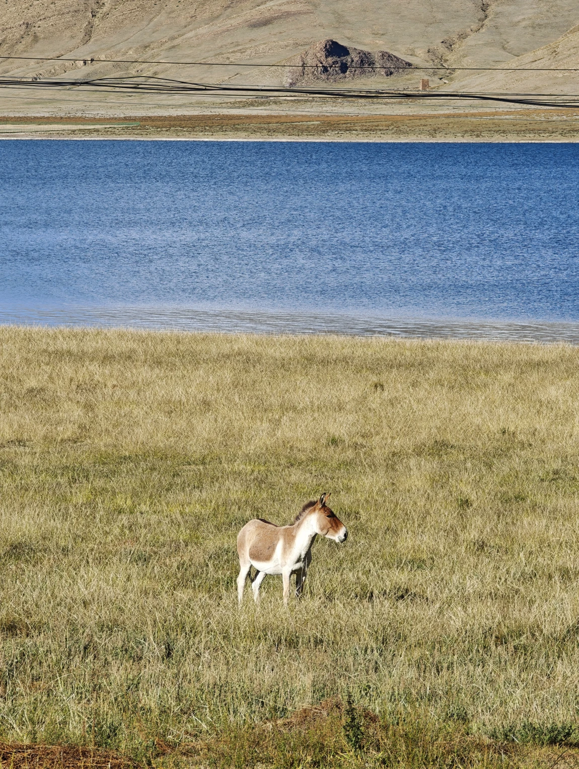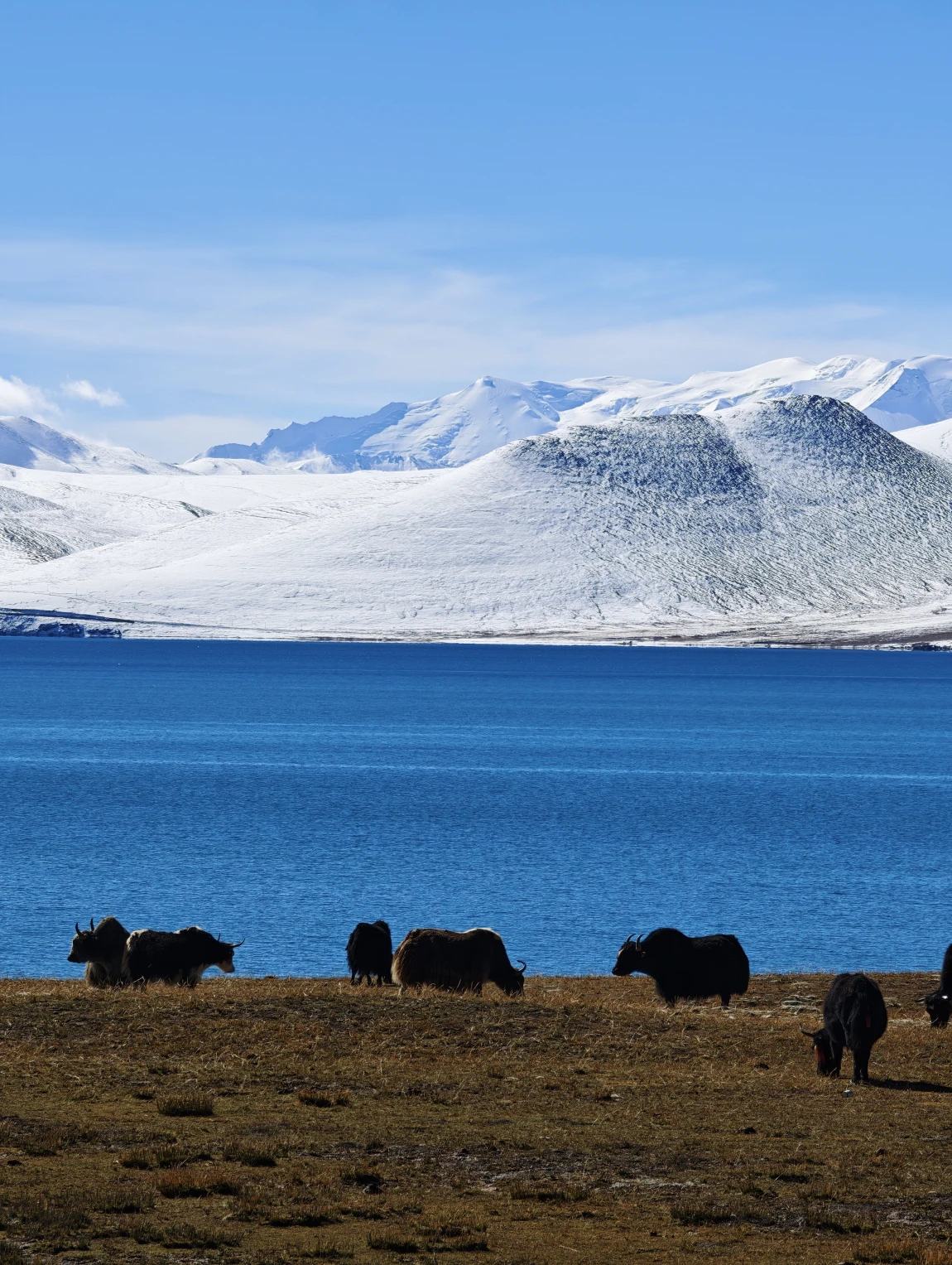 身体完全适应高反以后,即使上到5000以上的海拔也没有感觉什么不适了,翻过垭口就可以远远看见普莫雍措了。可以看到这个湖泊也是被各种雪山包围。继续沿着219国道开,一路就可以来到湖边。普莫雍措的湖水,顺光看是宝蓝色,逆光看则是蔚蓝色,湖边有不少动物,又一次看到了心形屁股的藏原羚。