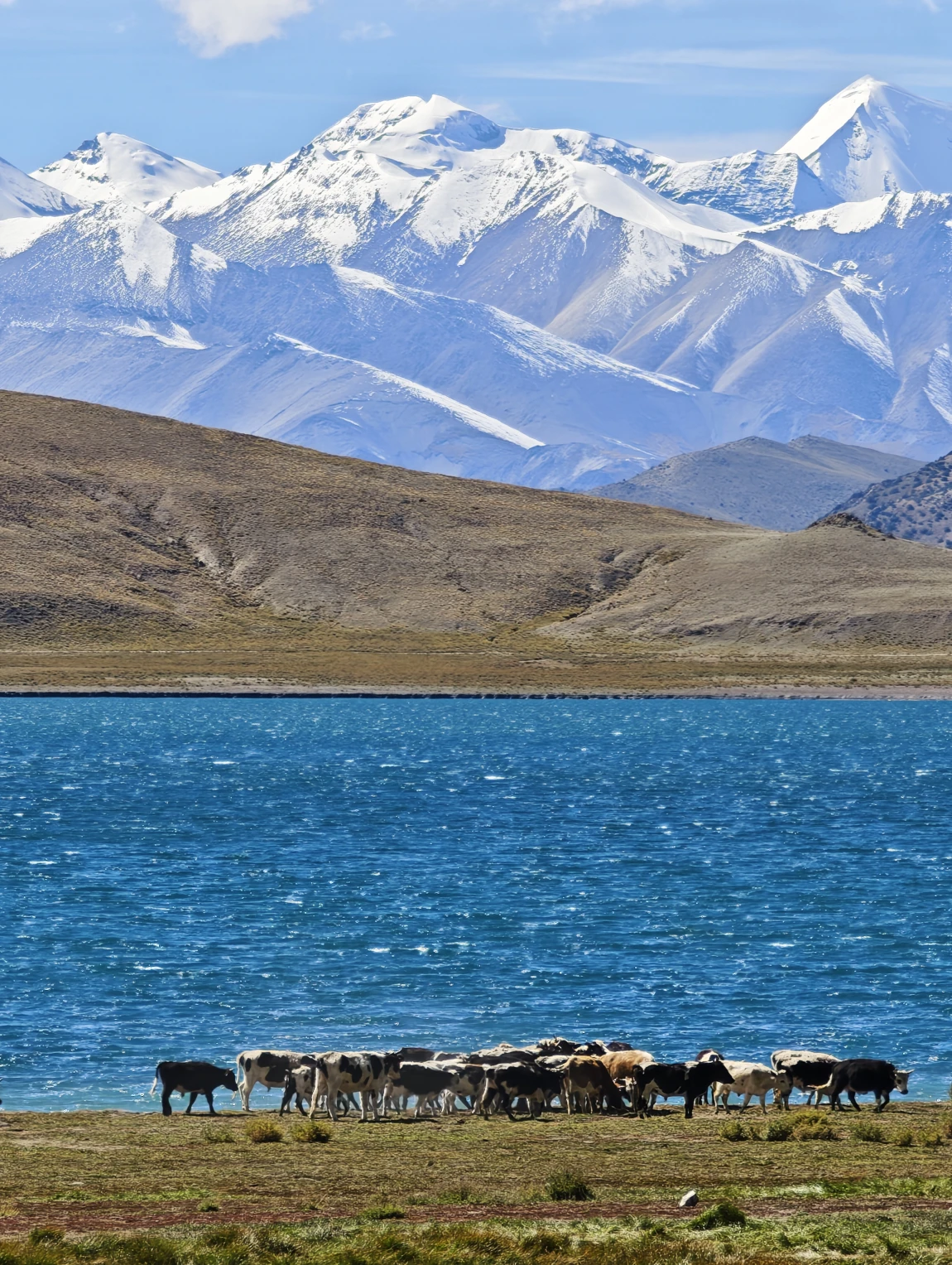 羊卓雍措不是常规的圆形或者椭圆形,而是由数条分支共同组成的湖泊,这跟我们浙江的千岛湖有点像。正因为水系丰富,所以湖边零散分布着许多村庄、牧场。如果说西藏其他的湖令人望而生畏,那么羊湖就显得更加亲切。一路上可以看到许多牛羊、村庄、和牧民。我最喜欢的是傍晚的羊湖,光线特别柔和,整个湖面和周围的景色都很温暖。