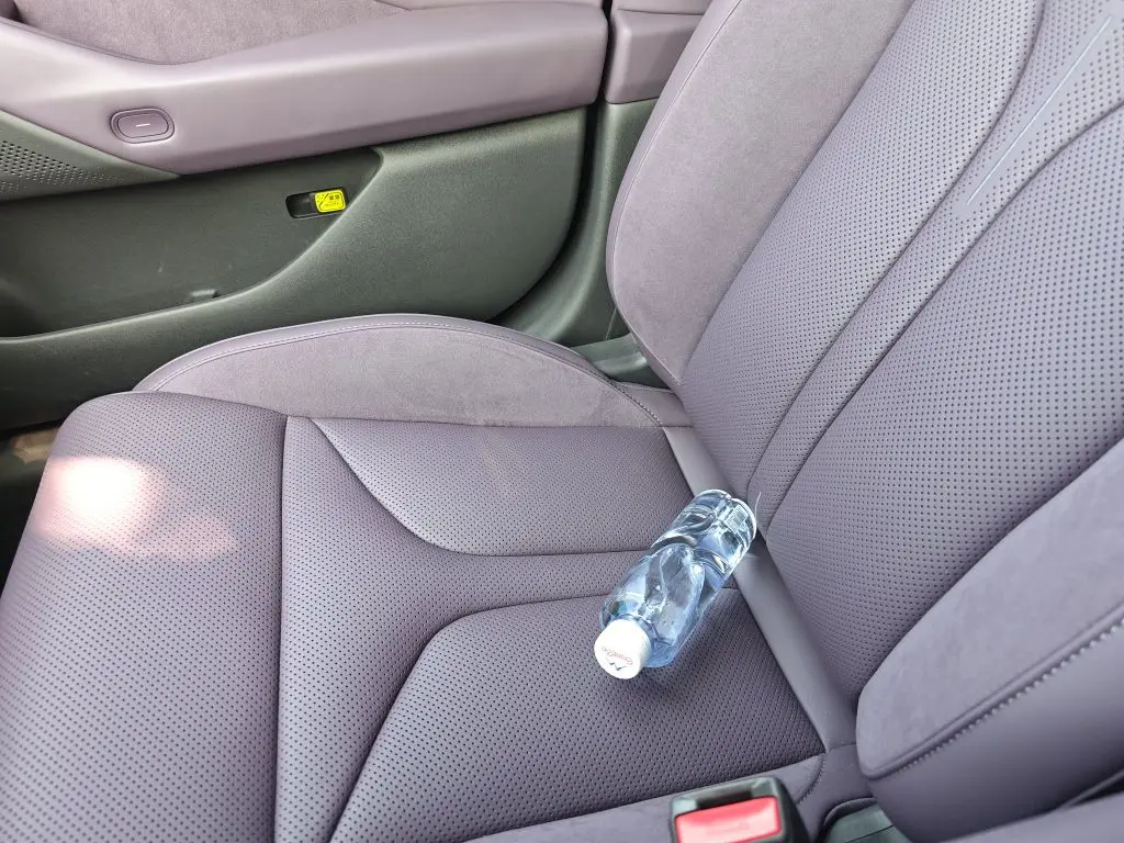 杯架带着柔和氛围灯,稳稳托住瓶子不晃荡,颠簸路段也不怕洒漏。软乎乎的座椅自带加热功能,搭配这瓶温水,上车瞬间驱散寒意,打工人通勤的疲惫都少了大半。