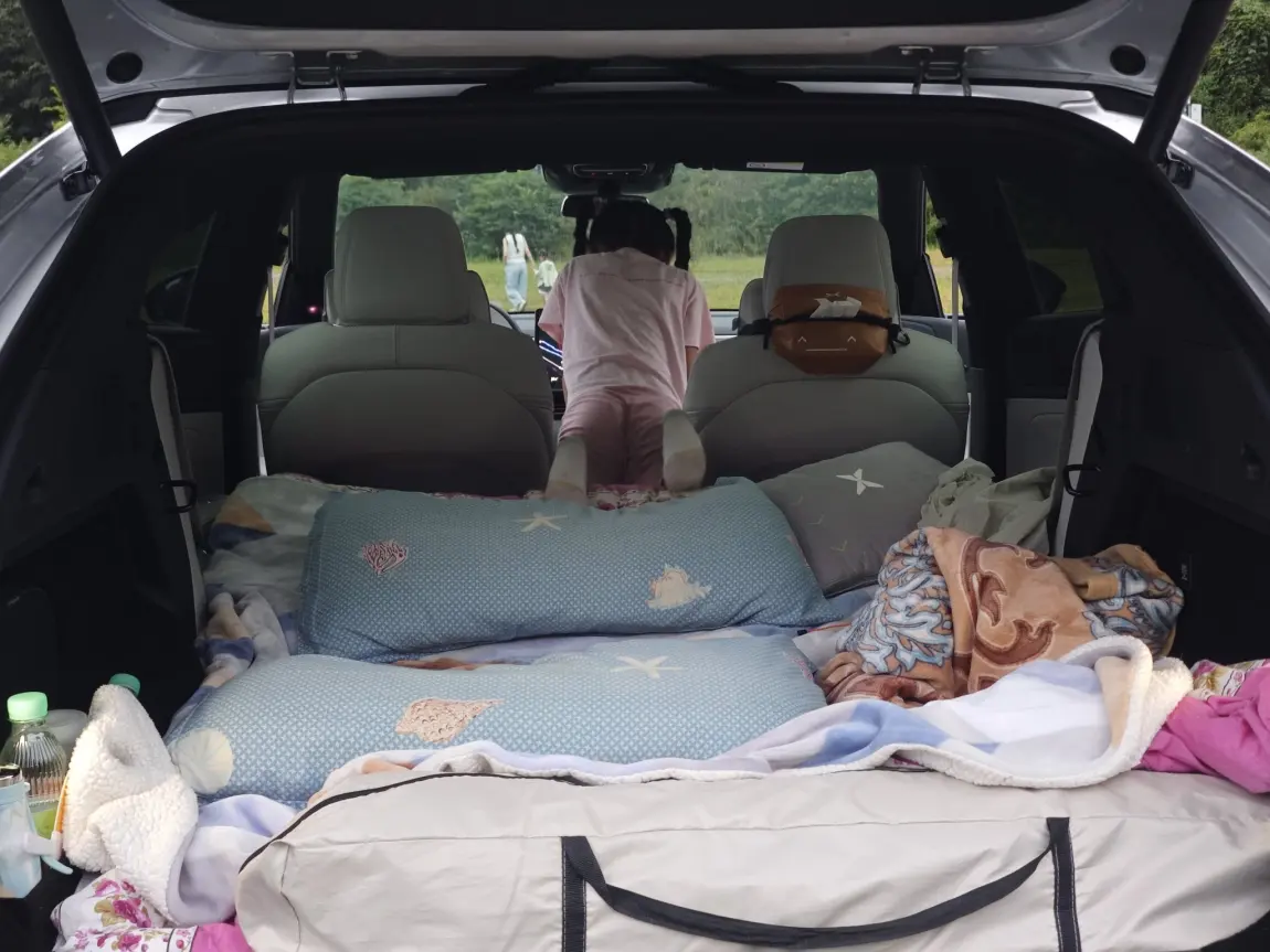 座椅加热功能在南方依旧实用,副驾家人常调侃“上车像坐到暖手宝”。全域800V让空调制热极快,最近降温时基本10秒出热风。后备箱塞下过整套露营装备,空间实用性满分。直接改造成床车,也是我家小朋友的最爱。