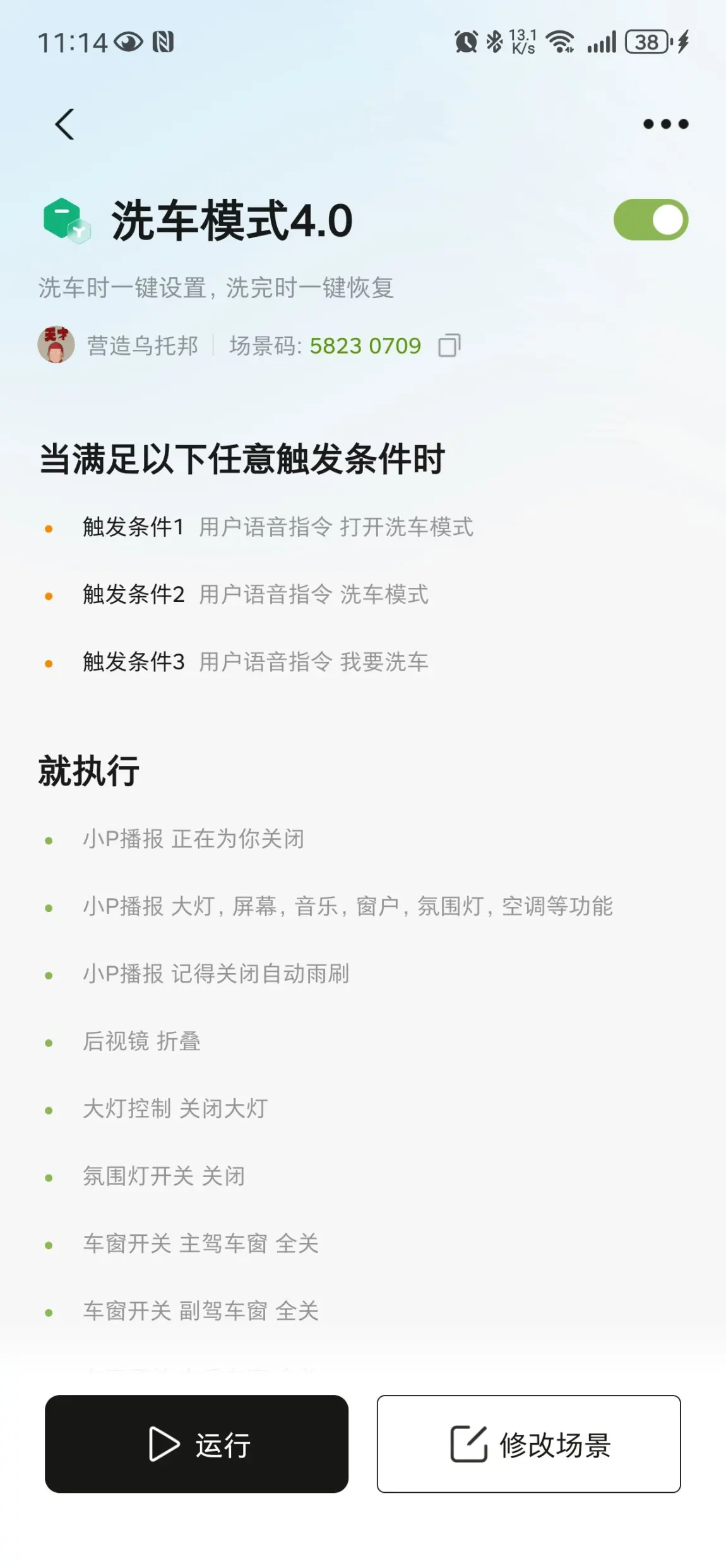 此外还有洗车模式,充电休息,小憩模式都能在对应的场景,给出正确的措施,关闭屏幕,调节座椅,调节空调等等…