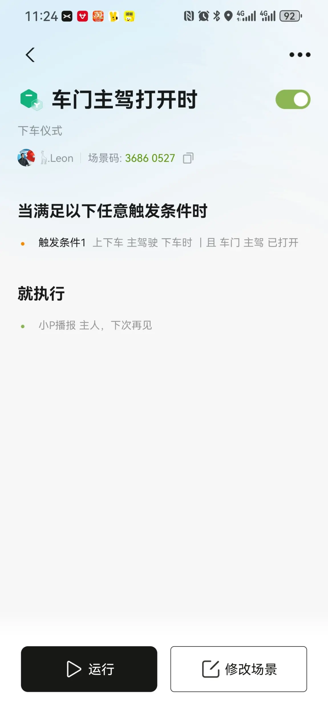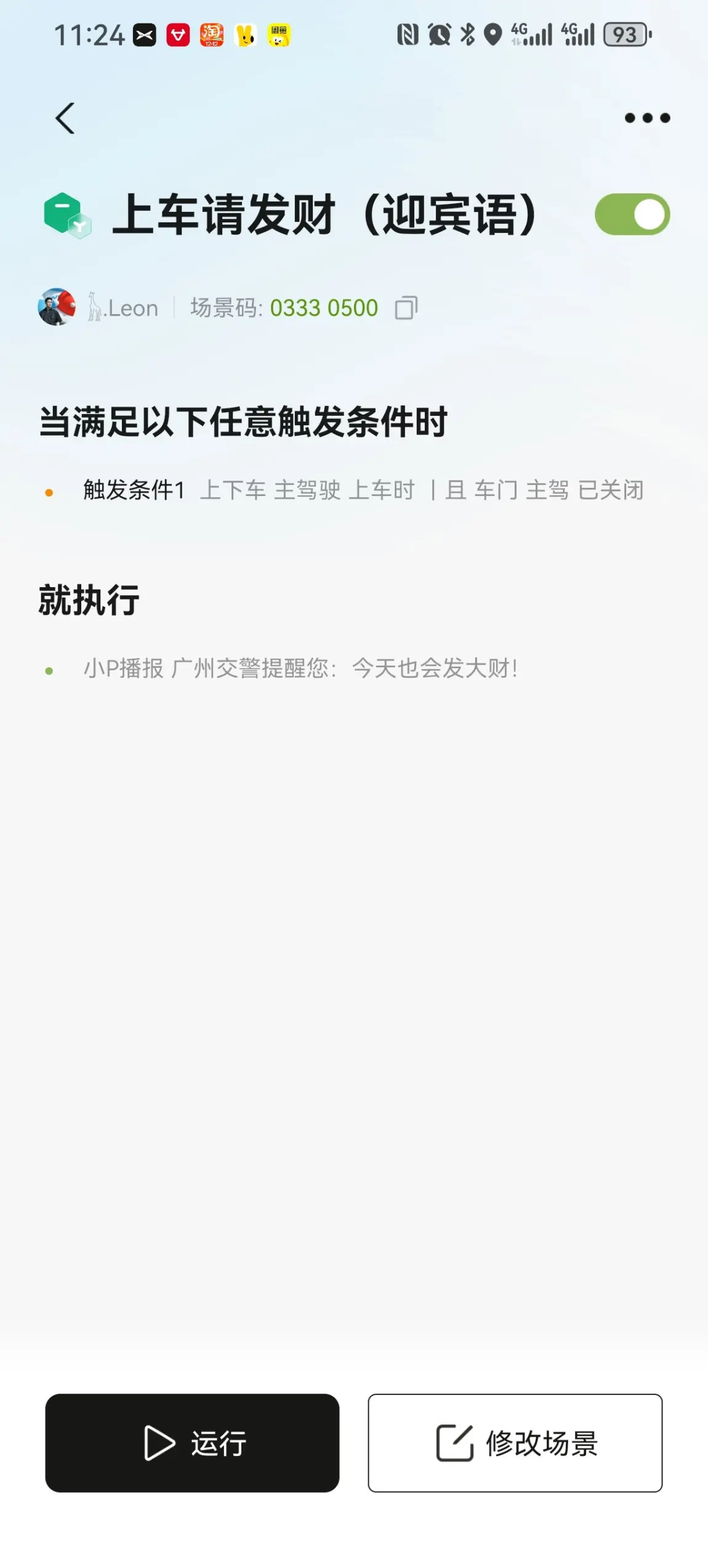 我设置了上车(广州交警提醒您,今天也会发大财!)和下车(主人,下次再见!)的欢迎语之后,每次开车都有小P欢迎和再见,仪式感爆棚,喜欢的鹏有也可以拿去使用~