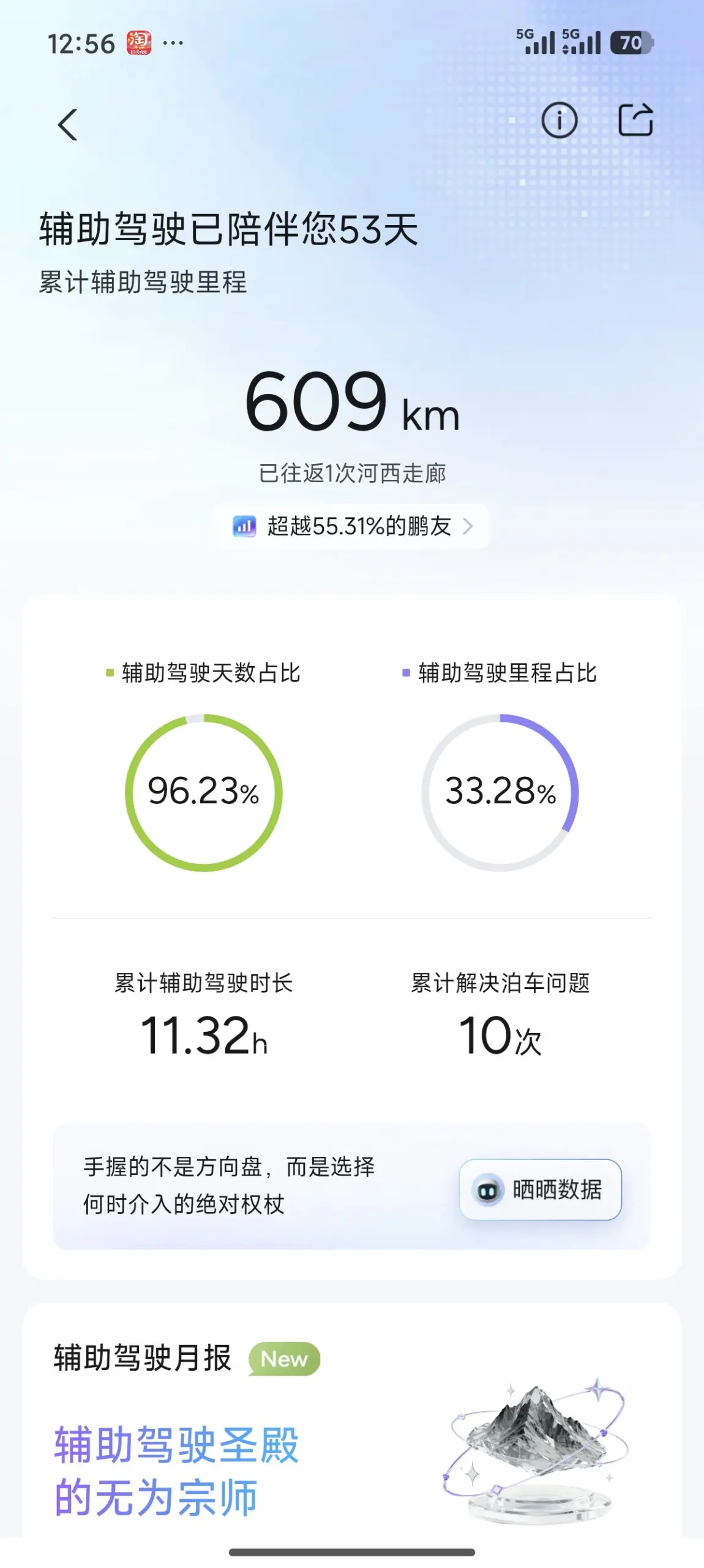到现在已经开了50多天,分享一下个人最新感受。先说小缺点哈,更新到最新的智驾版本,道路偏右的问题稍有改善,但还是存在。在高架大匝道转弯的时候会出现压线。这点还是需要再改进。对比上个版本好的地方我也要说一下,新版本能主动顶着限速跑了,不像上个版本莫名其妙的低速。自动泊车我也用了几次,停的都很好,但是我不太喜欢用,因为实际情况现在车位都比较小,与人方便要么靠右要么靠左多贴墙边一点。