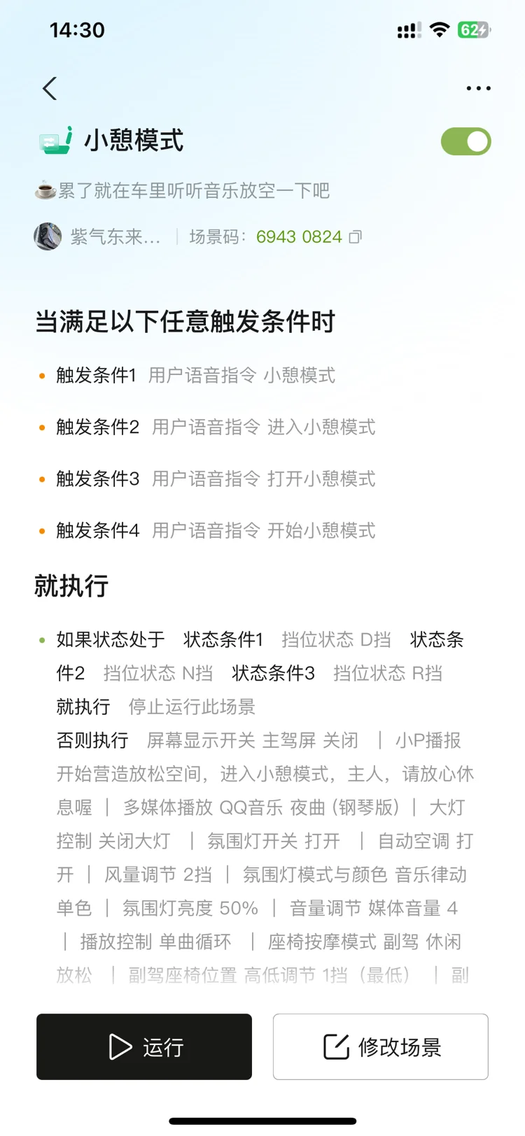 加班到深夜的夜晚,坐进熟悉的小鹏p7+座舱里,一句语音指令:小P,打开小憩模式,(智慧场景码69430824,需要的鹏友可以搜索下添加),就能唤醒座椅按摩与轻柔音乐,座椅缓缓放倒,卸下一整天的疲惫与紧绷,此刻的座舱既是移动的休憩空间,也是治愈疲惫的小天地。