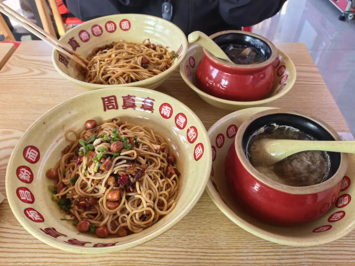 我们先是在酒店附近吃了个早餐,周真真连锁店,他这个汤特别好喝,皮蛋肉饼汤和鸡蛋肉饼汤,深受女朋友喜爱,以至于我们把汤一开始就炫完了,粉还没动,不愧是瓦罐汤发源地,这一块江西是专业的!