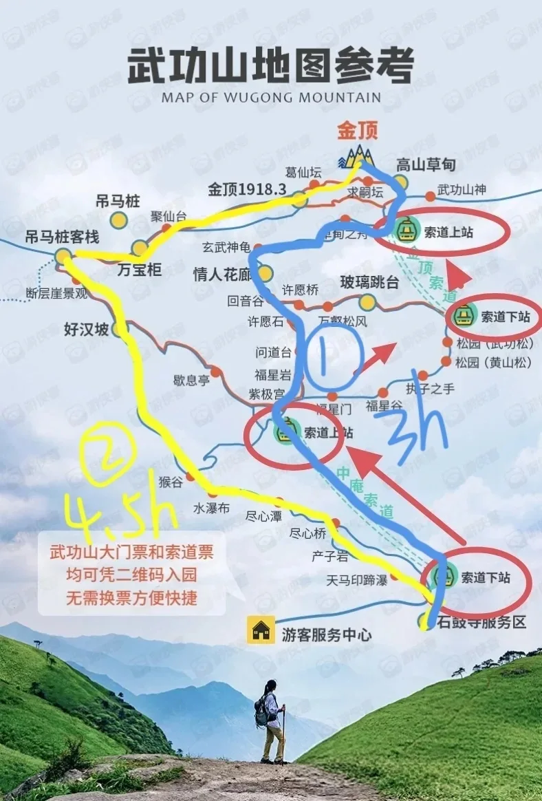但其实这并不是检票口!我爬了半个多小时结果才刚到检票口!当时整个人都心碎了,嘴硬的我再也不嘴硬了!我选择的路线是最长徒步路线好汉坡,但我建议选择下图中间路线,沿途风景更美一些!