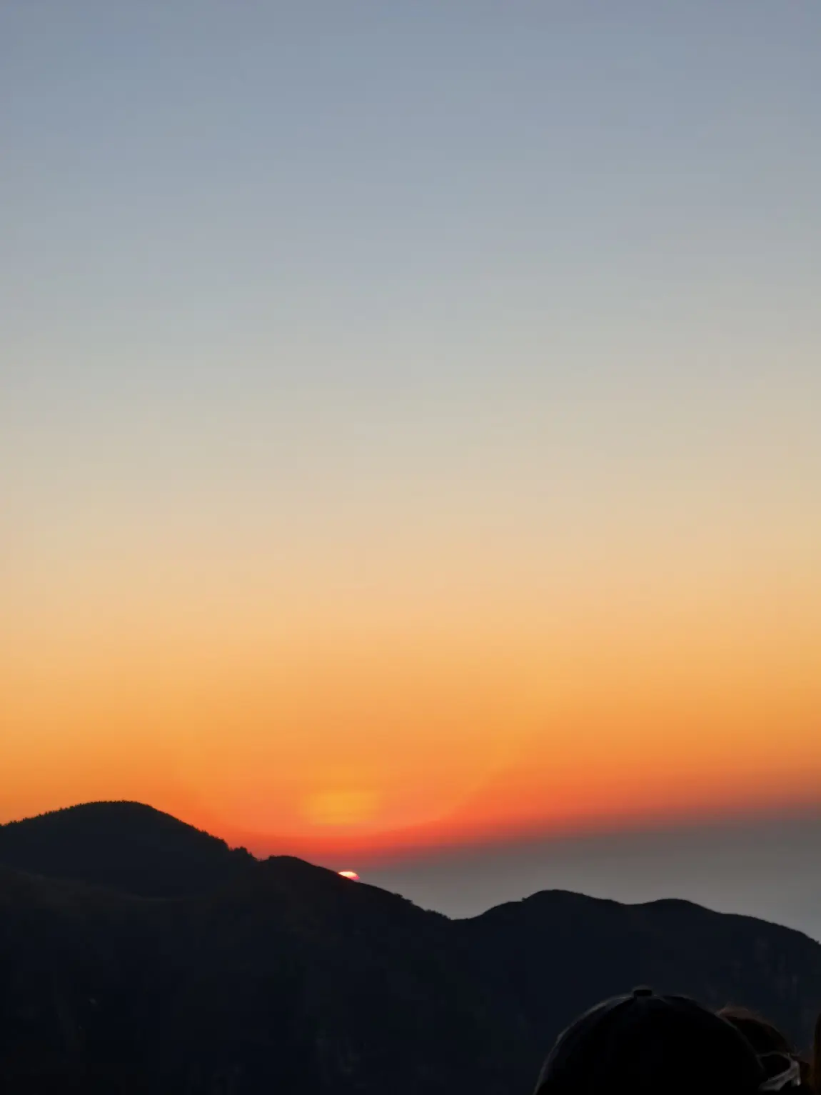 然后就是马不停蹄地赶往索道,听说索道还有半个小时关闭,我真的不想再徒步下山,然后半个小时索道路程我们十五分钟就到了!特别多人排队,但是听保安说索道会加班把我们都送下去,悬着的心终于放下了,还看到了夕阳!