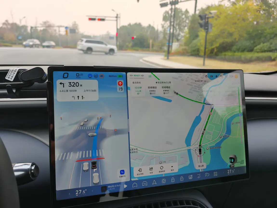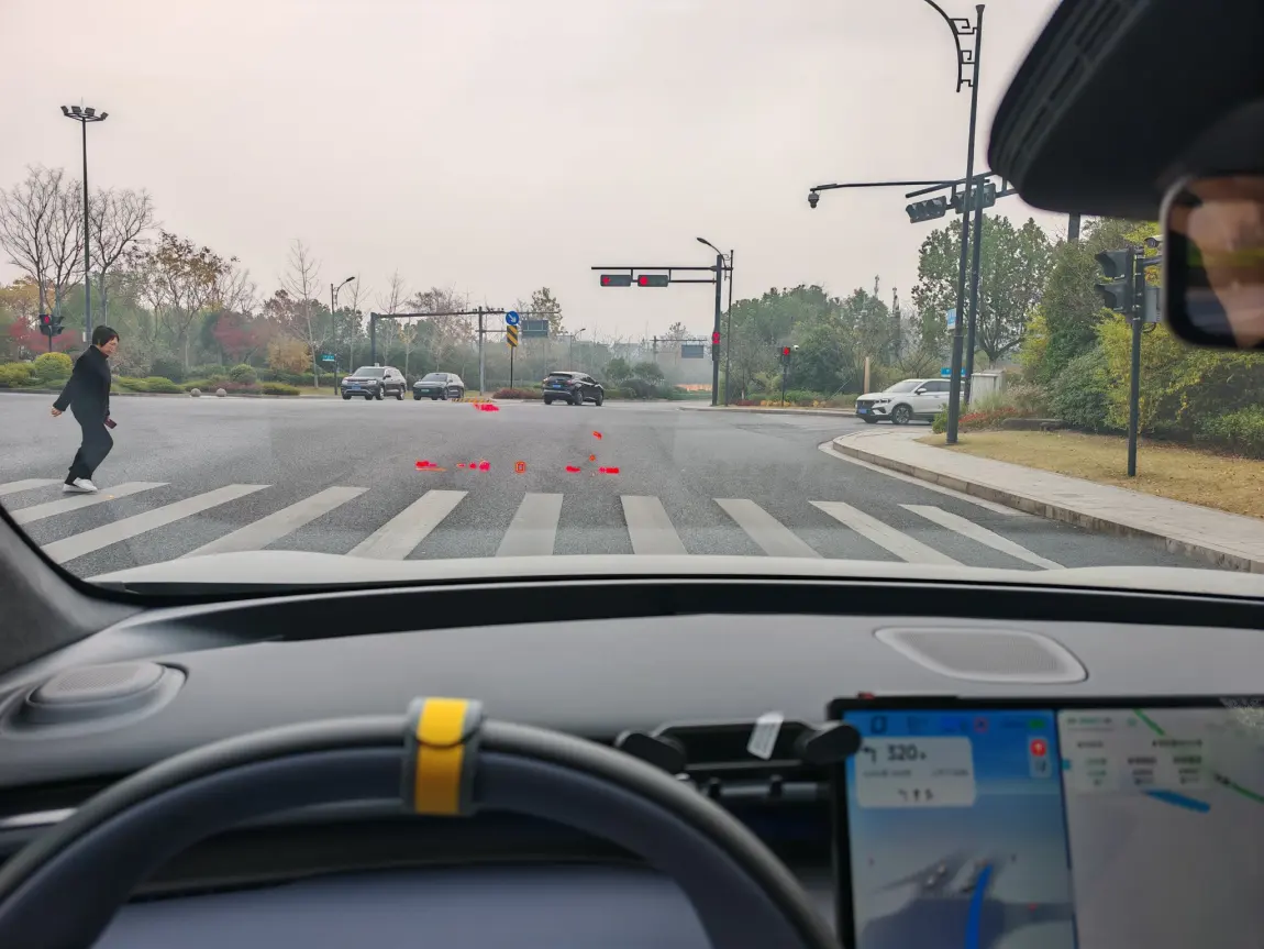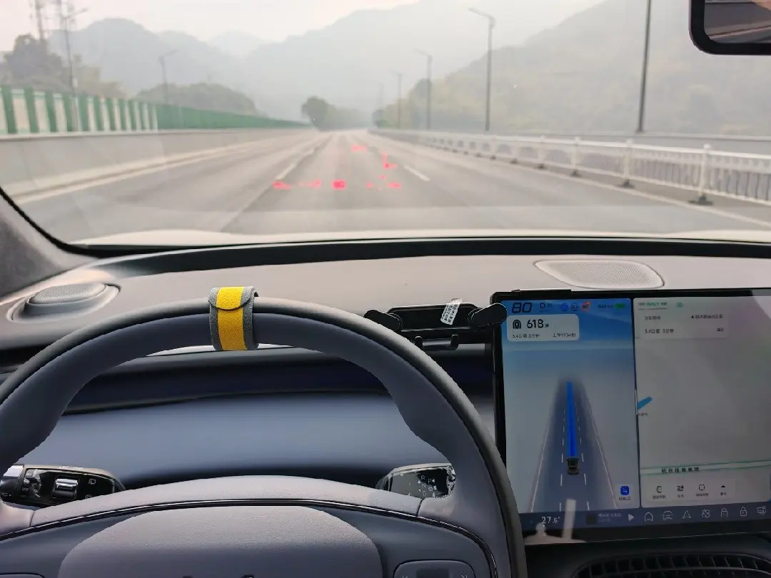更惊喜的是它的无眩晕贴地显示!之前坐过其他品牌的AR导航,画面飘来飘去容易晕,小鹏G7的SR用畸变矫正算法,画面和真实道路完美贴合,10米虚像距离看着超舒服,开2小时高速也不累。遇到“鬼探头”或加塞车辆,还会实时弹出红标预警,配合智驾系统的减速提示,相当于多了个“电子眼”帮我盯路。