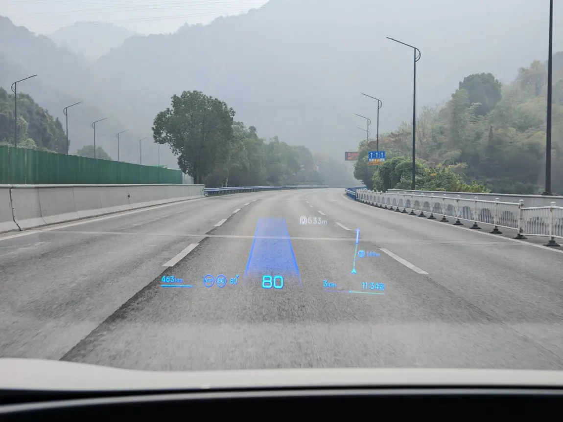 雨夜/大雾天再也不“瞎摸”开!之前最怕暴雨天跑高速,能见度不足50米,现在SR的12000nits超高亮度+1800:1对比度,就算雨刷狂刮,HUD上的车道线、前车距离、路牌信息依然清晰,还会自动标注施工路段、颠簸路面,提前减速避险,安全感直接拉满。