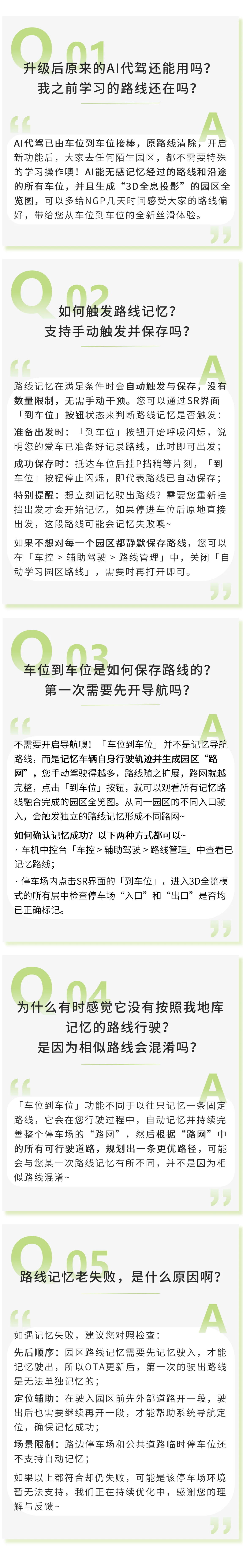 「车位到车位」功能正在陆续与大家见面,我们最近也收到了许多鹏友关于 “路线记忆” 的热烈讨论与细心反馈~ 💬小助手特别整理了大家最关心的5个问题,本期就为大家集中解答,一起往下看吧!✨
