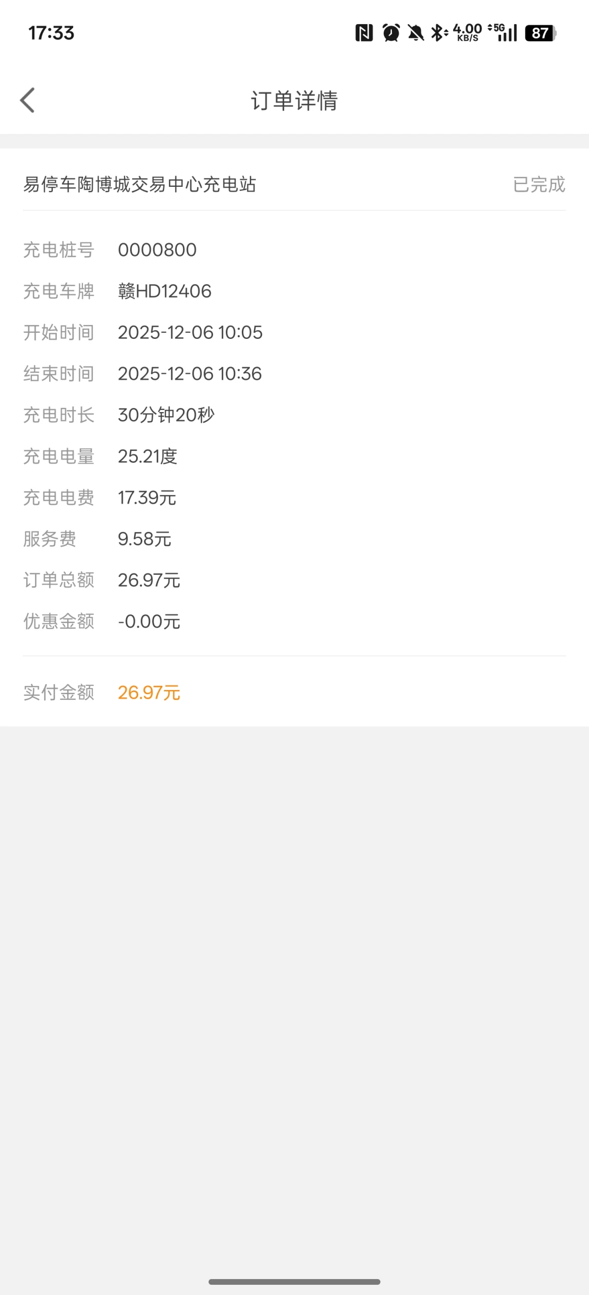 周六一早,收拾好行囊、备齐零食,驾驶着小鹏 G6 从景德镇出发。我们从景德镇西上高速,出发前,特意到景德镇陶博城,趁着免费20元充电活动的尾声,给G6补电,因为早上的温度还是比较低,G6启动了电池保护机制,虽然充电变得慢了,但是刚好能让我薅羊毛!充电31分钟,补能154km,总费用26.97元,返现20后,实际支付仅为6.97元!