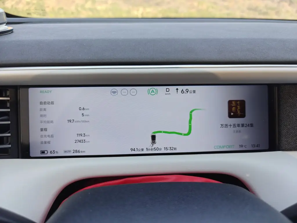抵达鄱阳湖老爷庙的时候,已经行驶了接近120km,其中高速里程100km左右,在这种工况下,G6的能耗依旧非常强大,即便不算停车电耗(因为停车时候,也没下电)续航达成率为120/(432-286)=82%。