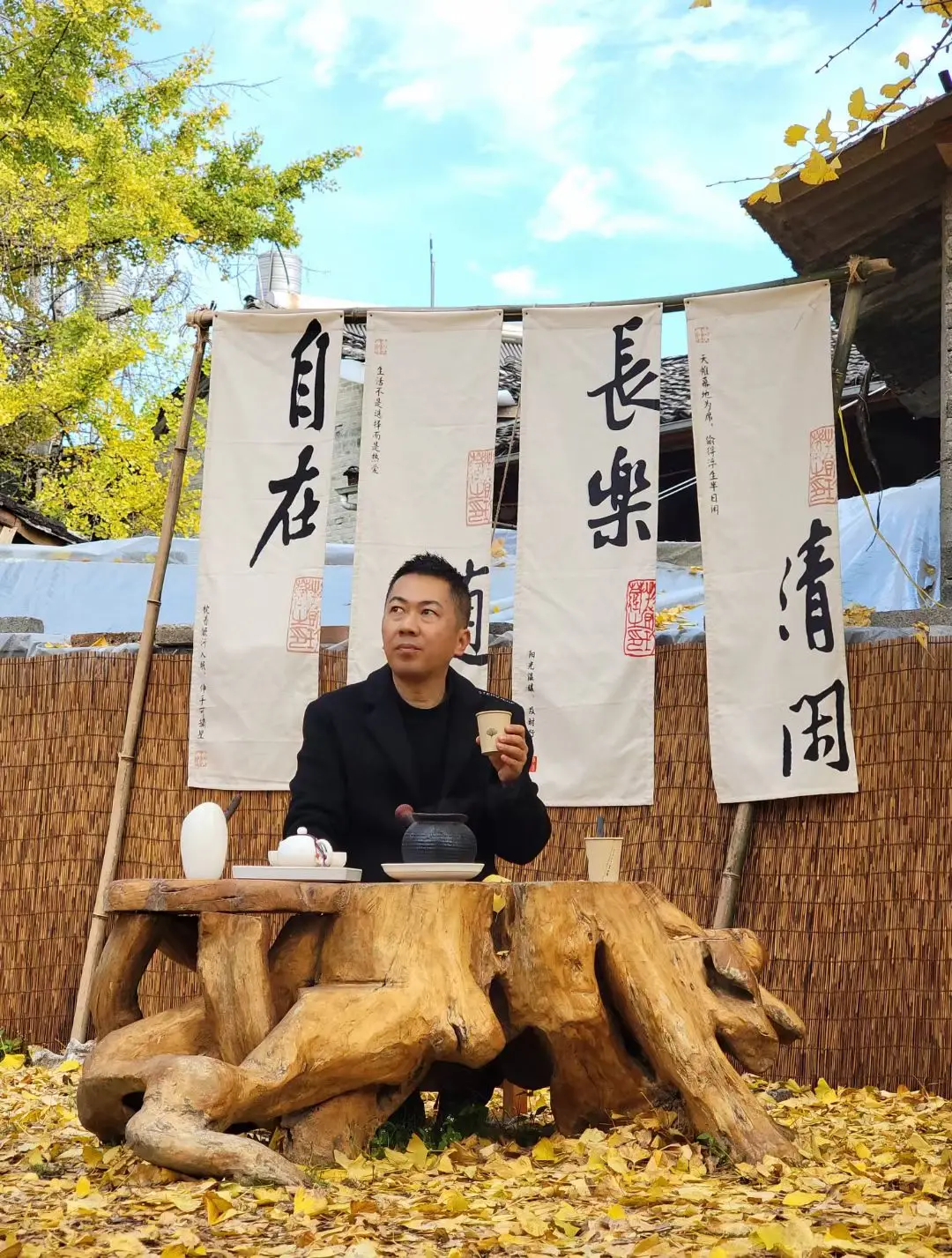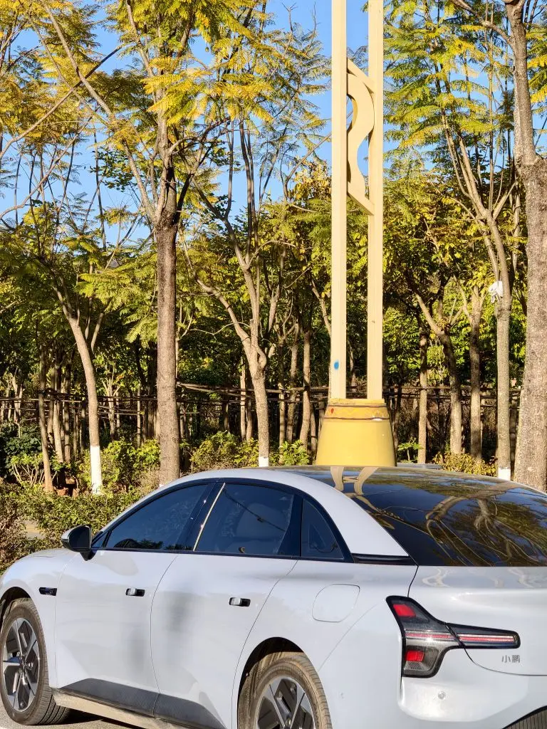 坐在村中银杏树下的烤奶茶店,一口热奶茶让我瞬间忘却寒冷。捧着茶杯靠在树根下,看阳光穿透叶隙,在车顶洒下细碎的光斑——小鹏MONA03的流线型车身与银杏林莫名契合,像从童话里开出来的座驾。