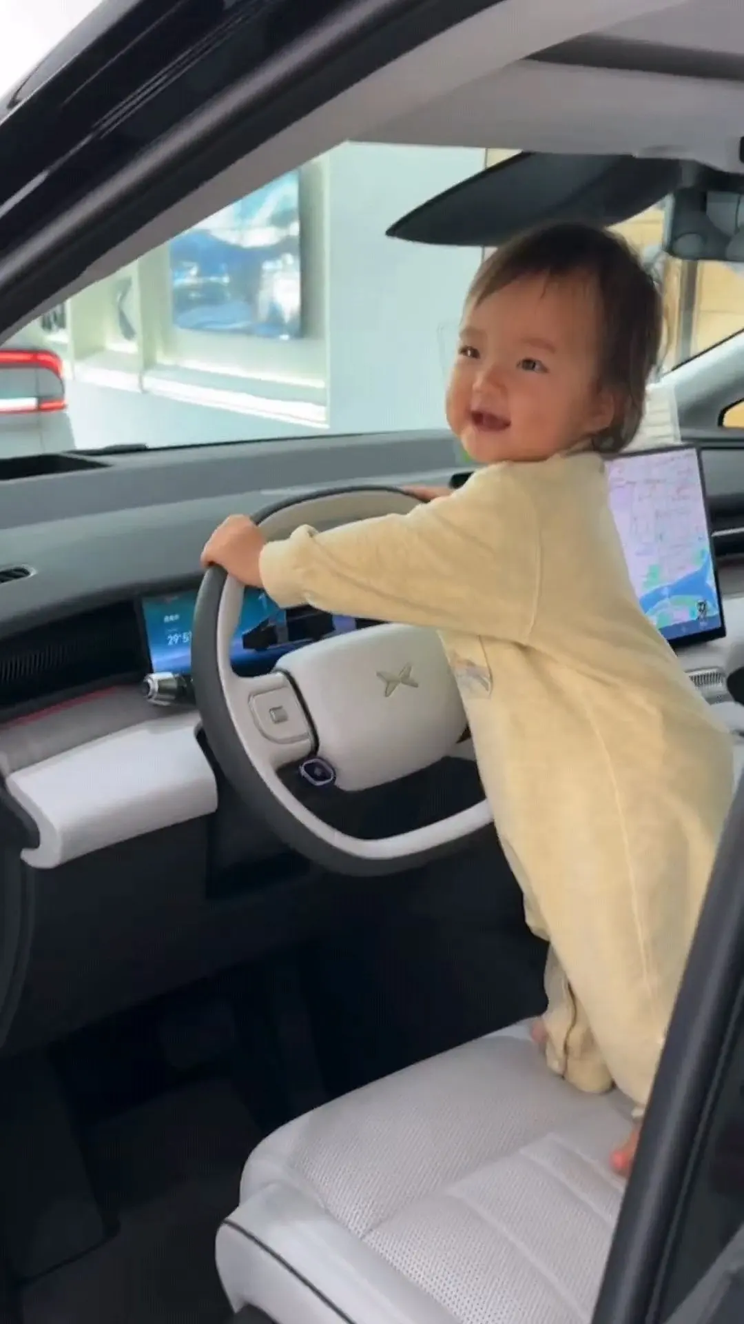 和X9的缘分确实是“源粪”,源于一泡大粪😂前两天我们一家自驾从广州前往南宁旅行,路过佛山的时候,我1岁多的小宝贝在车上拉了一泡💩,于是我们顺路去了一个特斯拉超充站充电,顺便找地方地方给小宝换尿片。超充站对面刚好有个小鹏的展厅,一直有把家里的一台Model3置换成MPV的打算,看见展厅里有台X9,于是就进去看一下。此前我们一直钟意某友商的i8,并且对X9没有任何想法。但“只是因为在人群中多看了一眼”,我和老婆瞬间就移情别恋了,我小宝贝上了X9后也不肯下来,在主驾上把着方向盘傻乐呵,要把她抱下来就哭。😓