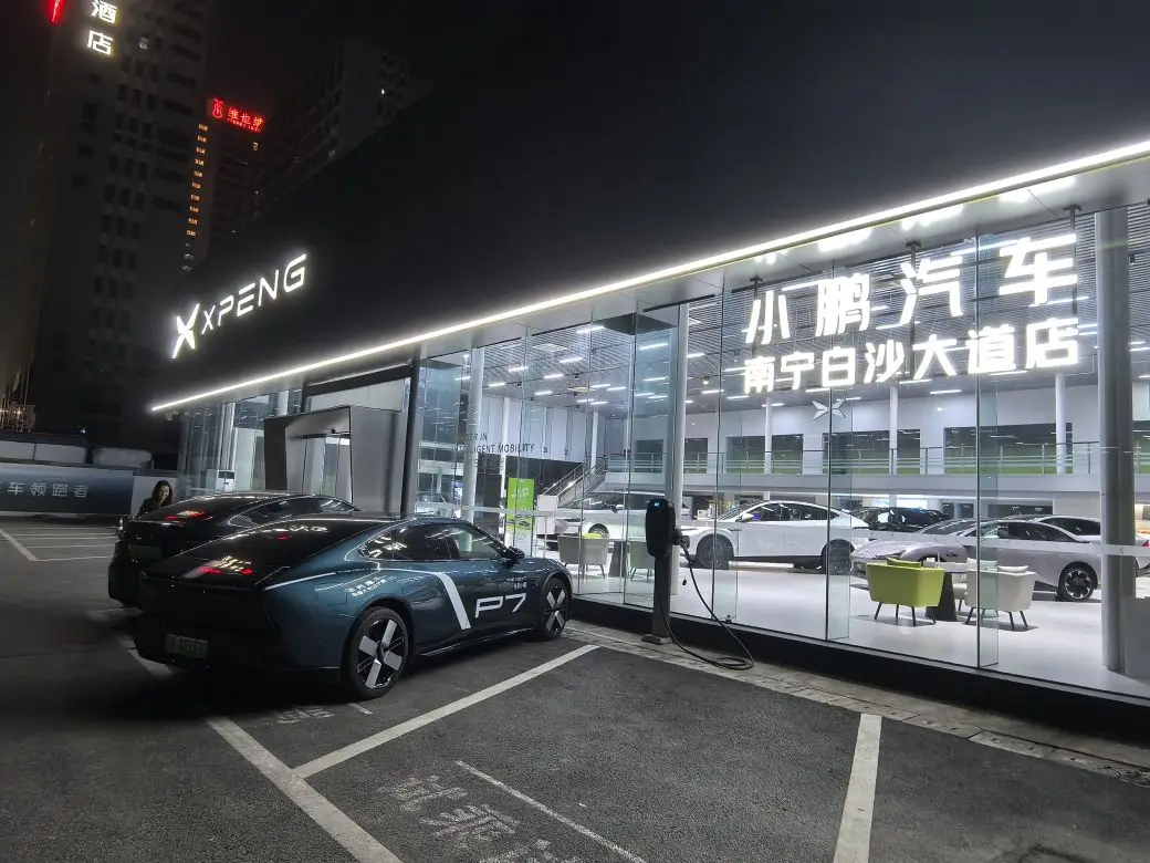 废了九牛二虎之力把她哄骗走了…晚上到了南宁后,又在南宁找了个特斯拉超充站充电,然后旁边又刚好有个小鹏门店。