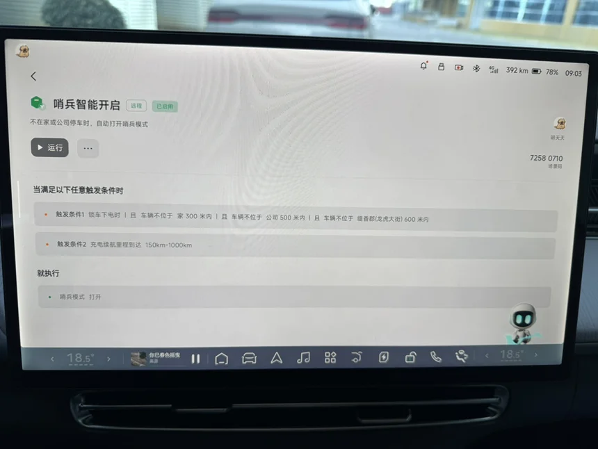作为妥妥的智能迷,XOS 5.8.5.8906版本的各种智慧场景我几乎都玩遍了,最戳我的还是哨兵智能开启功能!