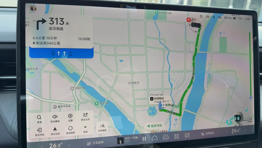 车载导航的聪明程度同样值得点赞。它不仅路线规划准确,还能主动推荐停车场,并用清晰的光柱显示途经点的预计到达时间。在复杂路况下,系统能融合全场景大模型进行推理预判,当遇到拥堵时,它会主动询问是否需要寻找更优路线,这种贴心的预判让我总能高效抵达目的地。