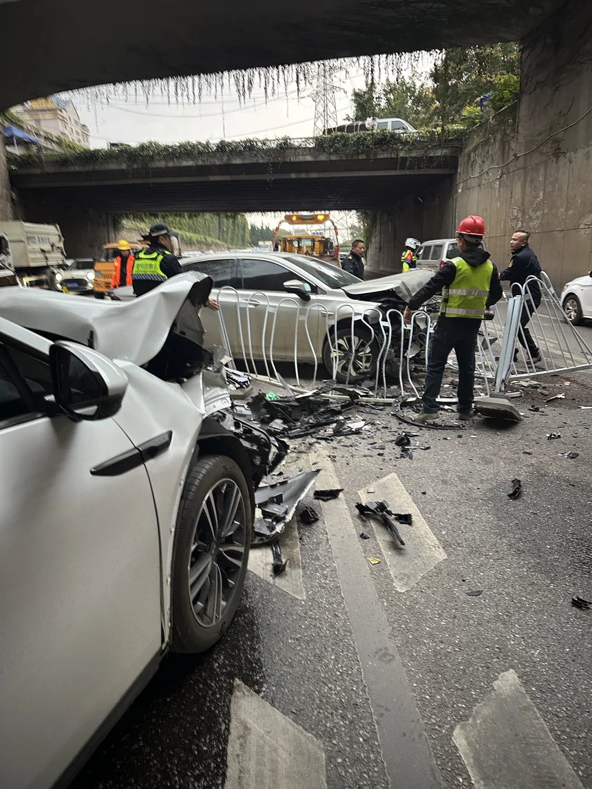 在完全无法人为反应的越栏逆向事故中,车辆自动制动有效降低撞击速度,为生还提供了关键的缓冲。