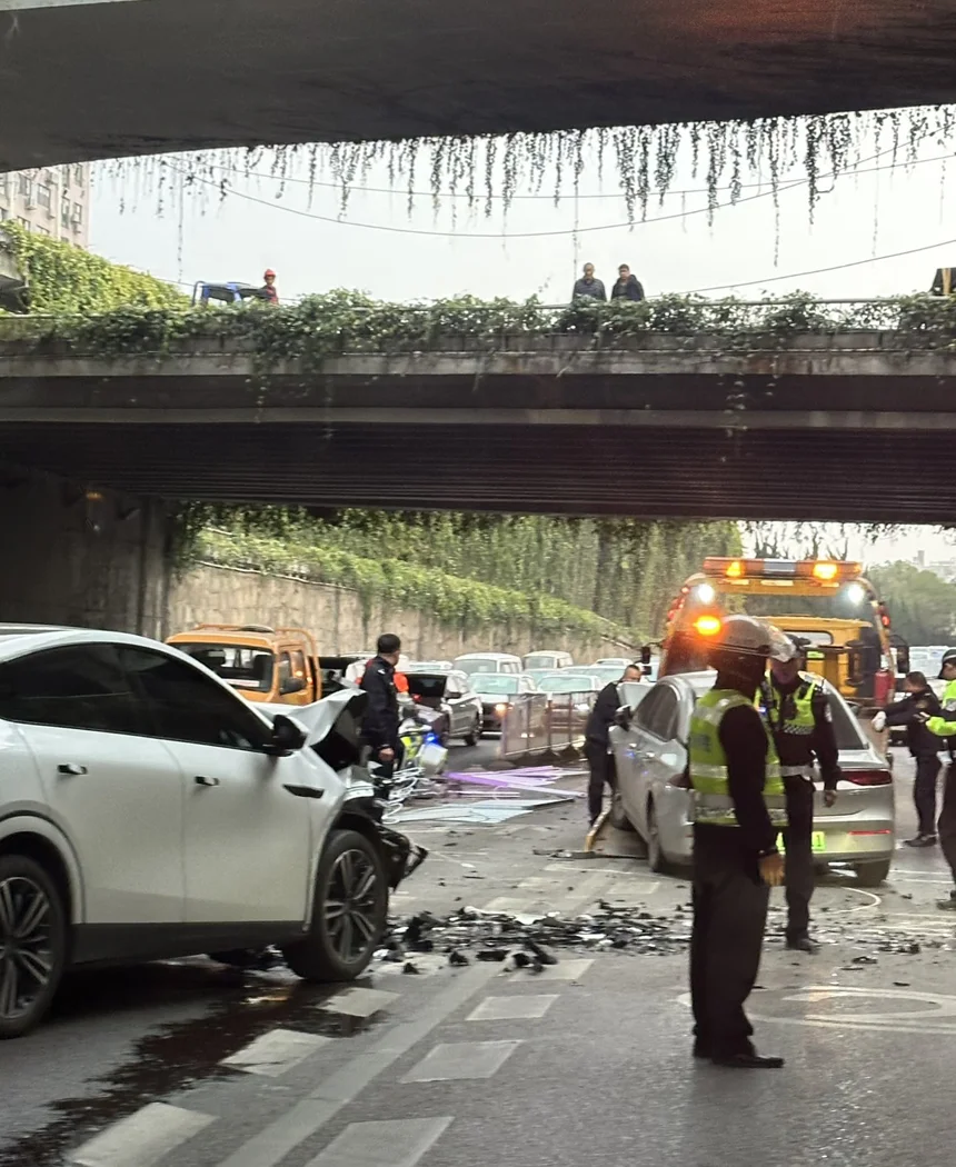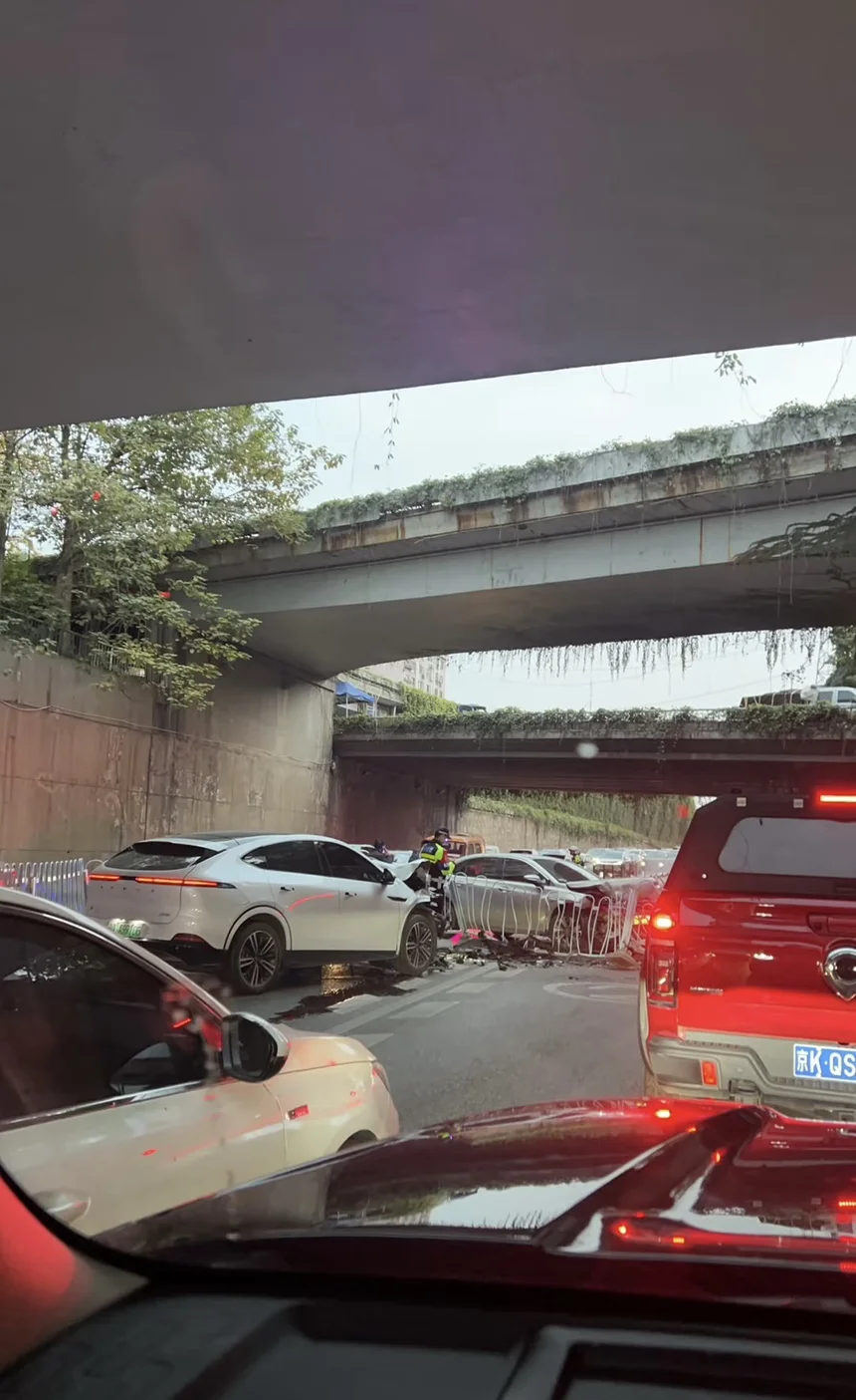 在强烈正面撞击下仍无漏液、无热失控、无短路,体现了电动车底盘安全的成熟设计。