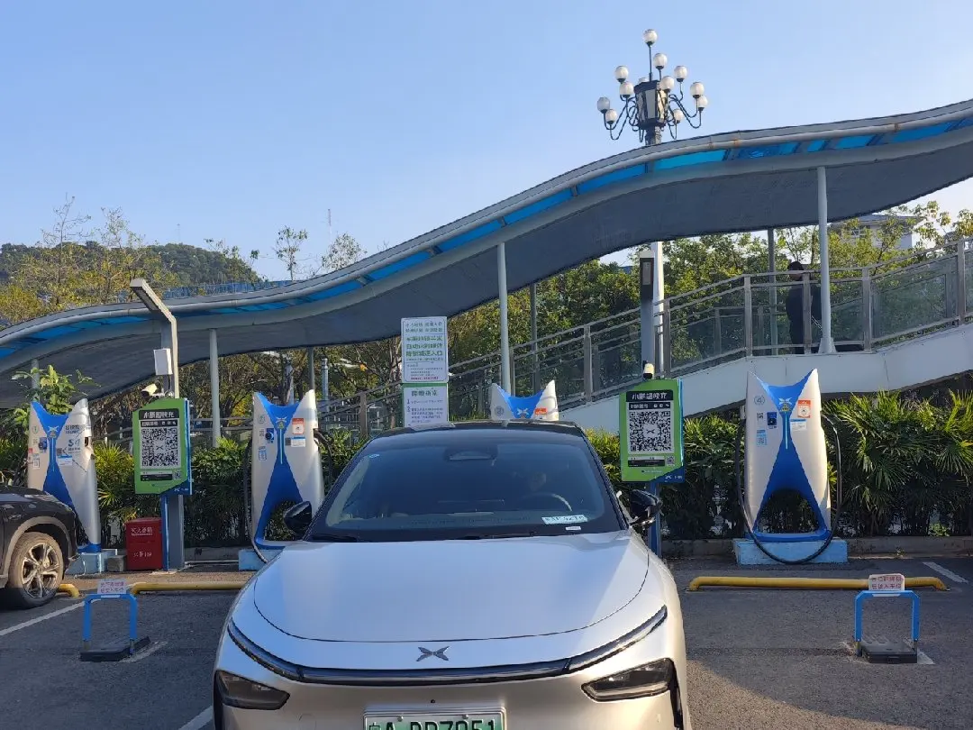 傍晚返程前,特意绕到充电站给车补电。看着蓝白相间的充电桩和我的小鹏并排站着,突然觉得这一天像颗裹了糖的栗子:新牌的新鲜、山村的野趣、饭菜的热乎,都裹在风里,甜得让人想把时间按个暂停键。