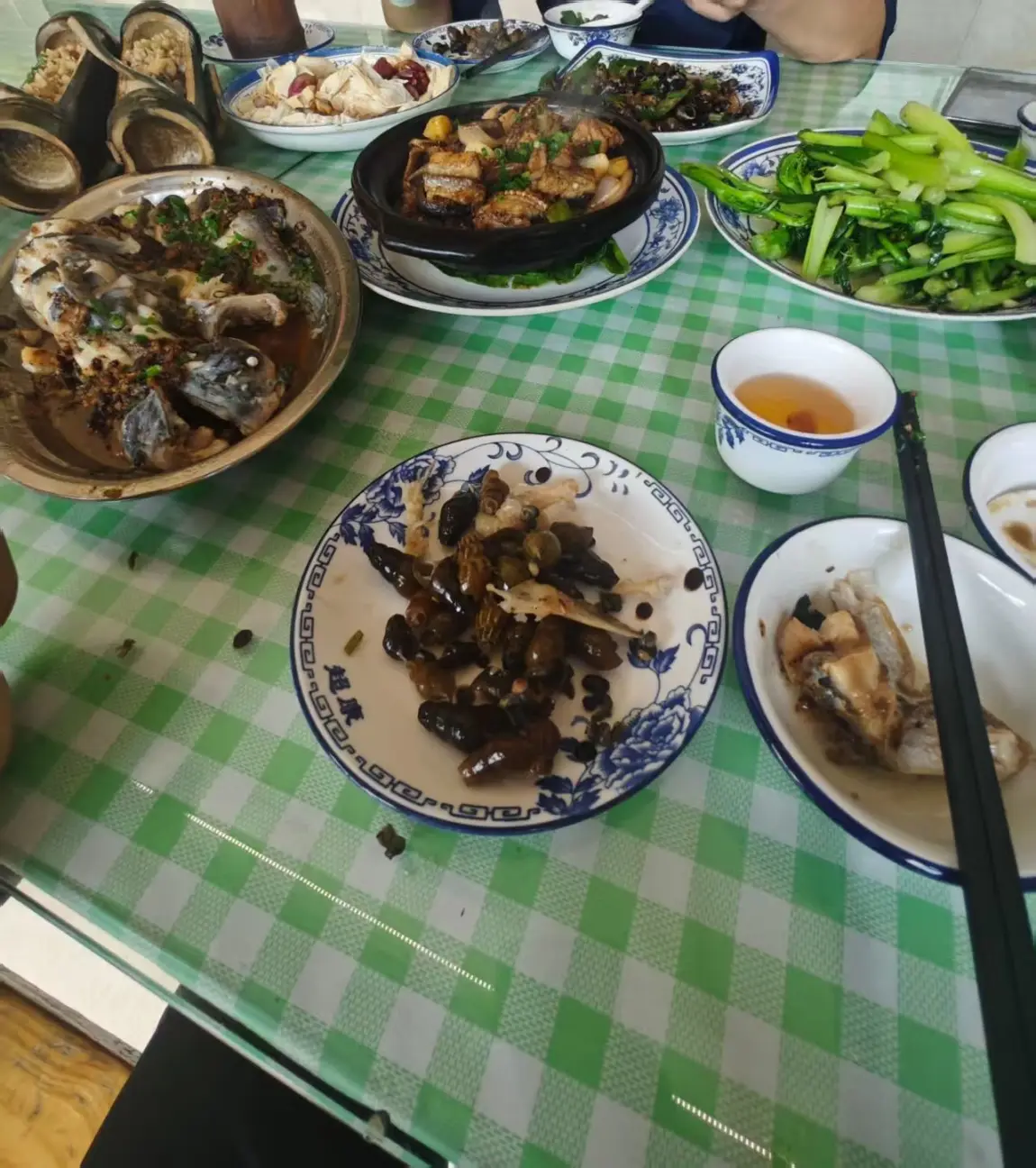 午饭是扎扎实实的农家味:蒸好的竹筒饭带着竹香,鱼块裹着蒜蓉香得舔盘,连清炒的菜心都脆嫩得掐得出水。几筷子下去,肚皮圆了,连带着早上赶路的乏劲儿都散了个干净。