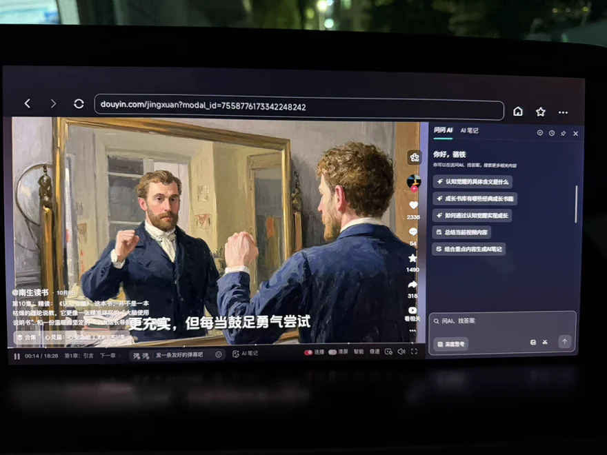 2025年我最喜爱的智能座舱功能,它满足了我要的帆书观看、抖音、CCTV电视台的这3个功能。在浏览器收藏后打开很方便载入也快,不用另外再装app。