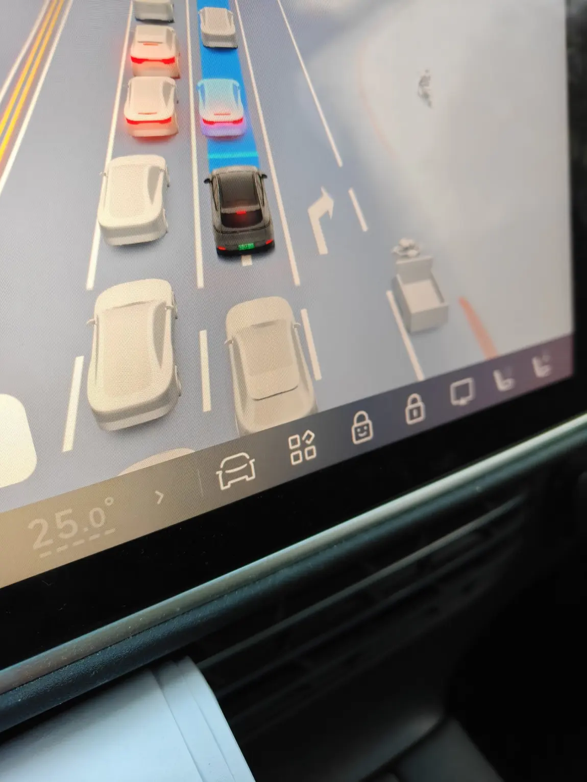 #2025年我最喜爱的智能座舱功能# 随着小鹏系统的更新,5.8.5版本发展sr的显示越来越漂亮了,除了能显示早晨和傍晚的夕阳场景外,在车道和车辆显示上更细致和漂亮了