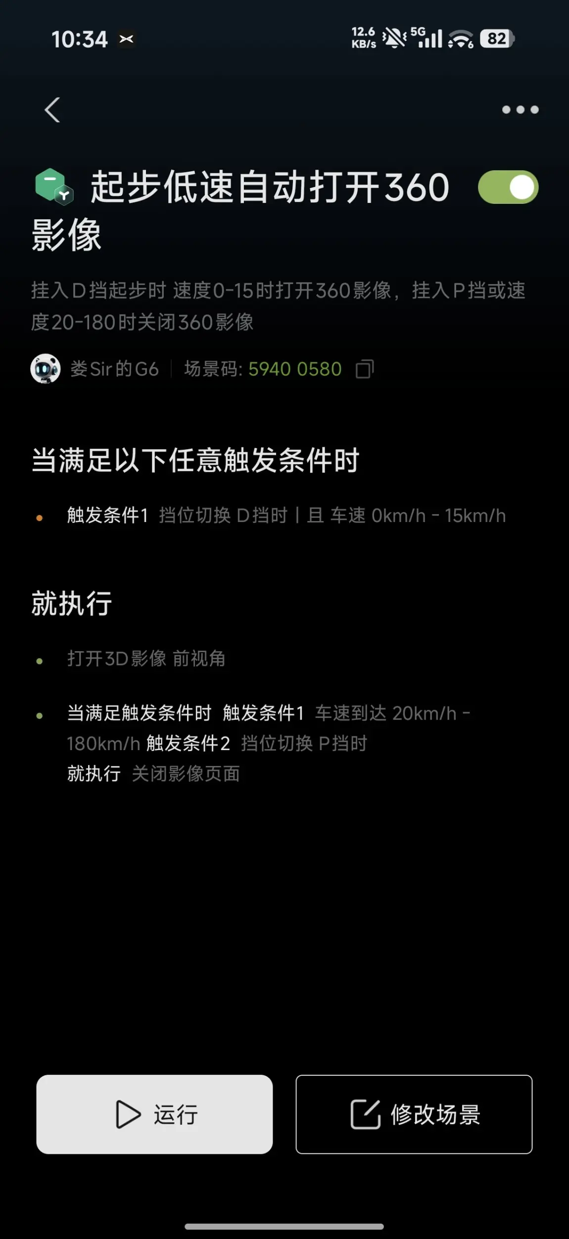 起步启动360影像,平常开车起步很少去绕行车辆一圈,很多小狗小猫和小朋友在视角盲区里面,看不到很正常,开启这个起步360影像启动的智慧场景后,感觉安全了很多。心里面也安全多了。推荐鹏友们也用这个智慧场景!