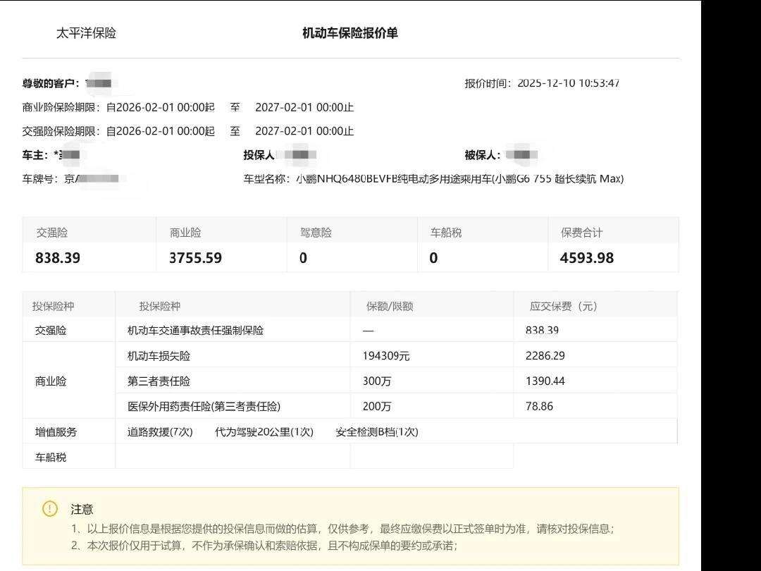 小鹏G6车险续保大逆袭!4393元搞定全险
