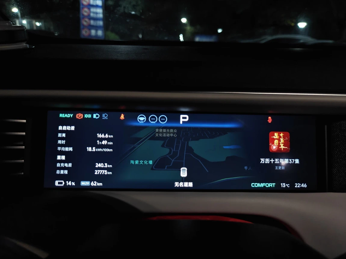 因为连夜高速行驶,把家人送回家后,看到仪表盘的电量已经不多了,而此时小P也开始发起了“补能提醒”。遂来到附近充电站,花了10分钟把电量补充到45%。