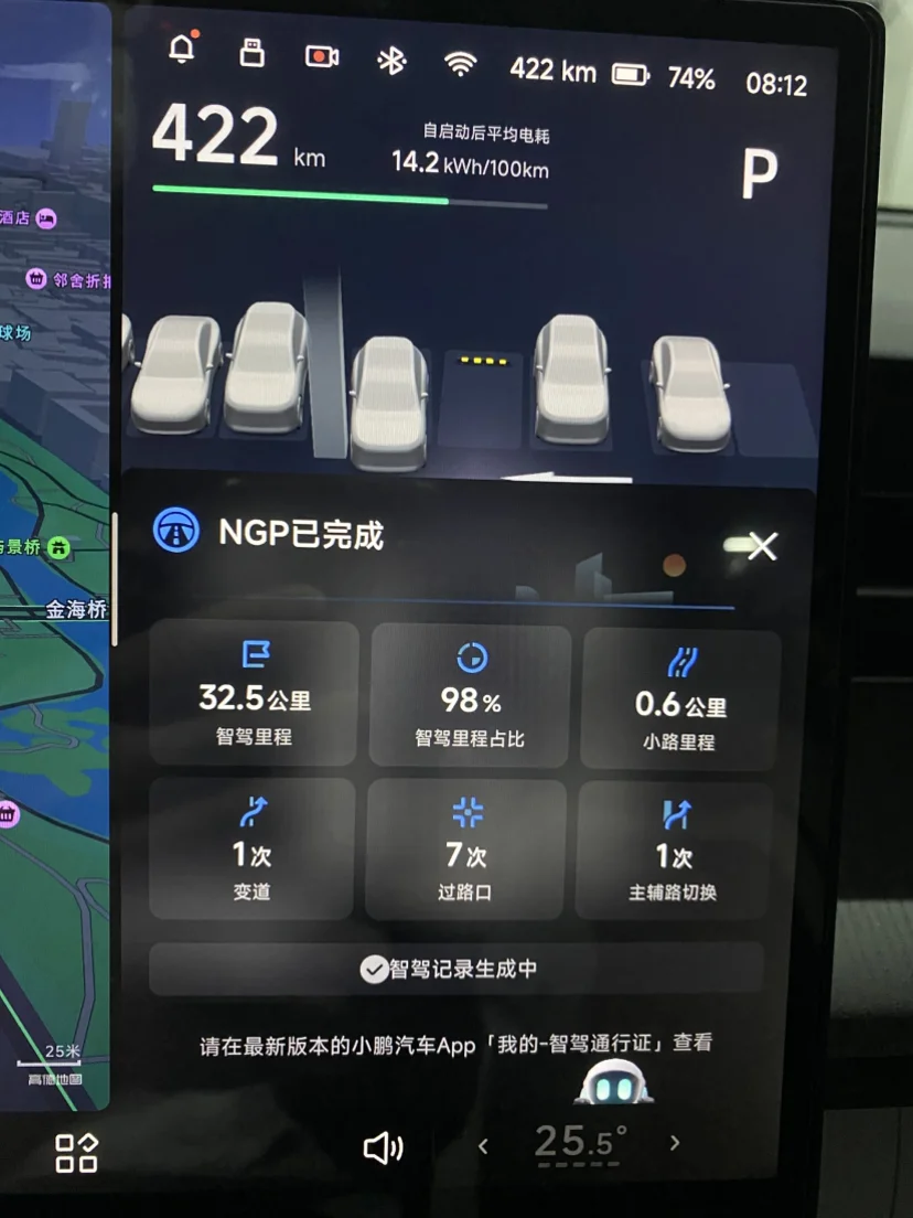 第一,车位到车位功能,这个好实用啊,家到公司全程解放双手,太巴适啦!特别有时候加班比较晚,有ngp的加持,我也不用担心开车打瞌睡,安全感满满!智驾小蓝灯特喜欢,看着好治愈!