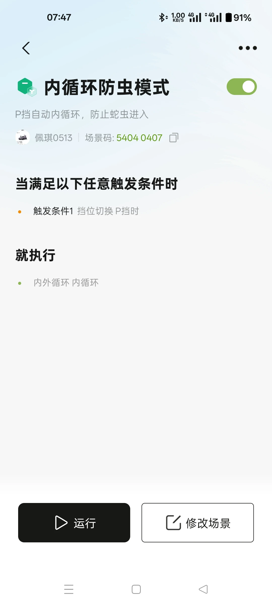 再夸夸智慧场景:自己折腾了个「内循环防虫模式」,挂P挡自动切内循环,夏天再也不怕小虫钻进车里;还有官方推荐的“充电自动关灯”“低电量提醒”,连下车忘挂P挡都会喊我,像个靠谱的副驾!这些功能都是基于当前5.85版本,用起来丝滑又贴心~