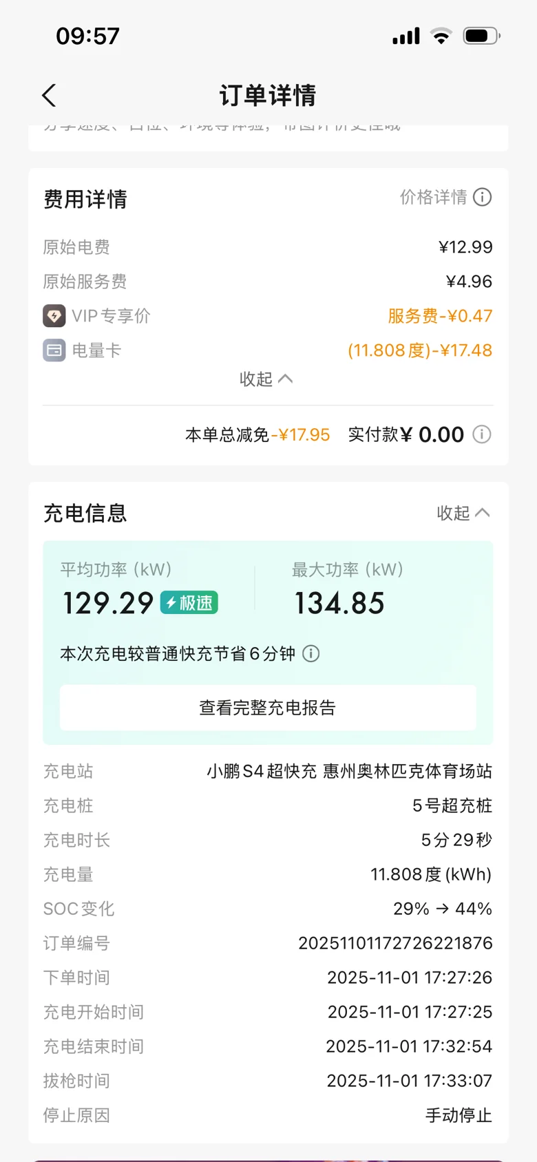 说起来最让我拍案叫绝的,是惠州奥林匹克体育场那回S4超充体验。5分29秒,11.8度电稳稳灌进电池,SOC直接从29%蹦到44%——平均功率129.29kW的“极速模式”哪是充电,分明是给车插了根能量吸管。比普通快充省6分钟,赶饭局的路上补能,连奶茶都没喝完就满电复活了,这效率不得封神?