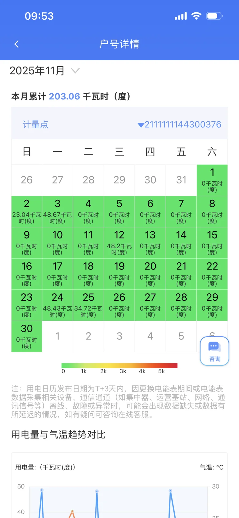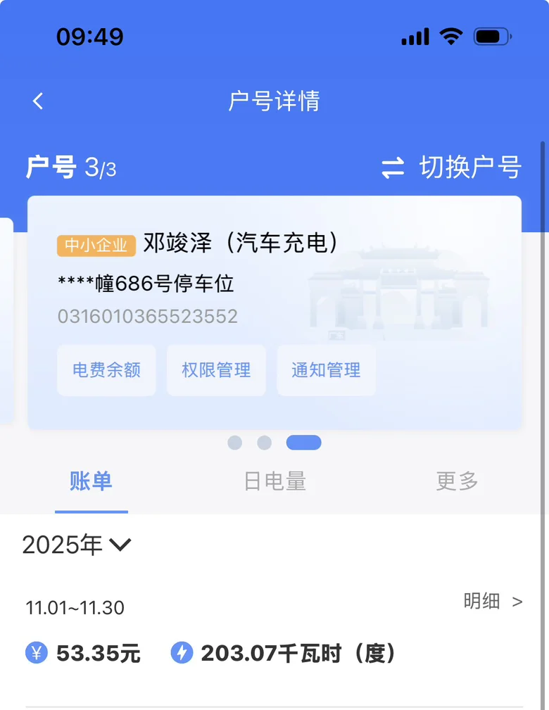 再看账单,整个11月家充用了203度电,电费才53.35块。算下来每公里成本还不到5分钱,这哪是开车,分明是骑着“电驴”跑高速啊。