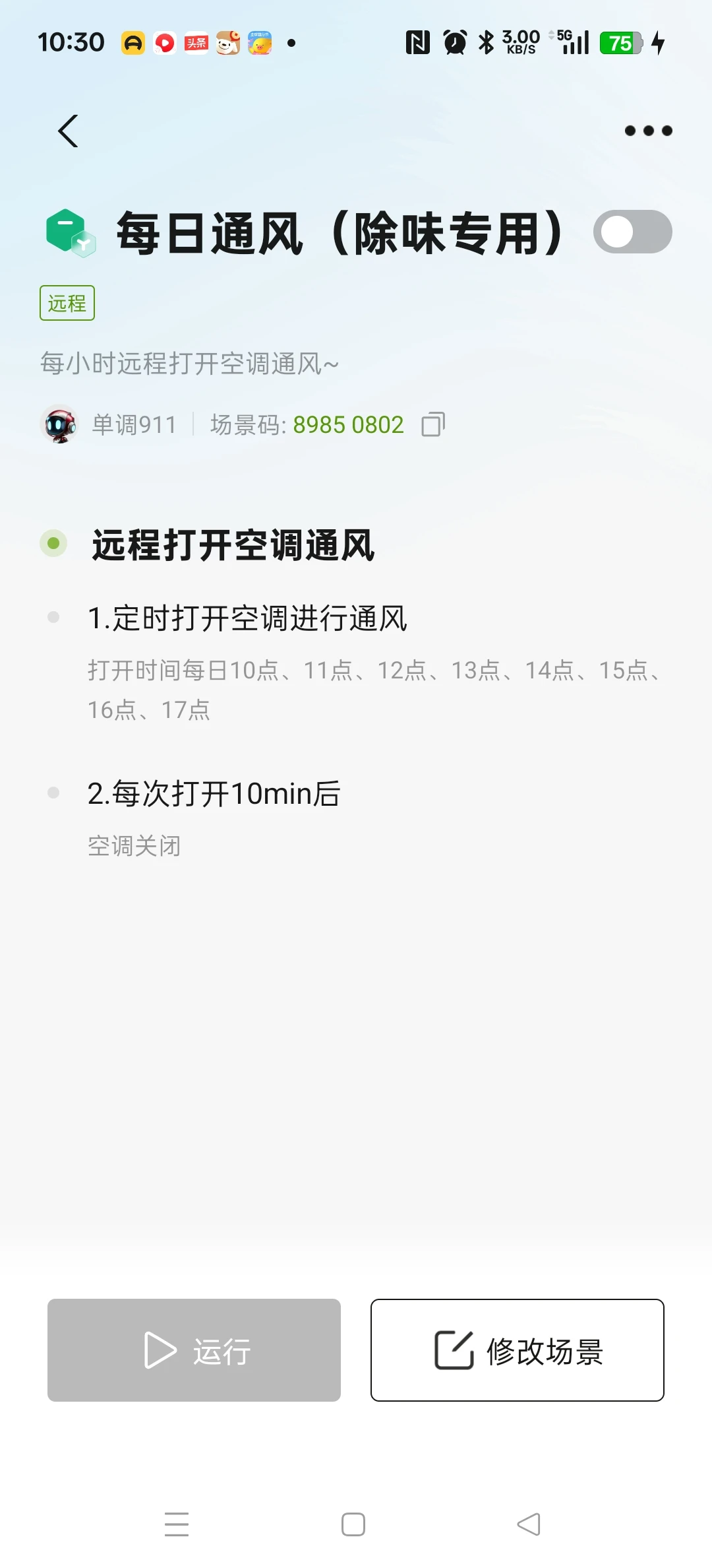 2.精细的控制: 如通风场景支持设置具体风量、持续时间、内外循环模式等。