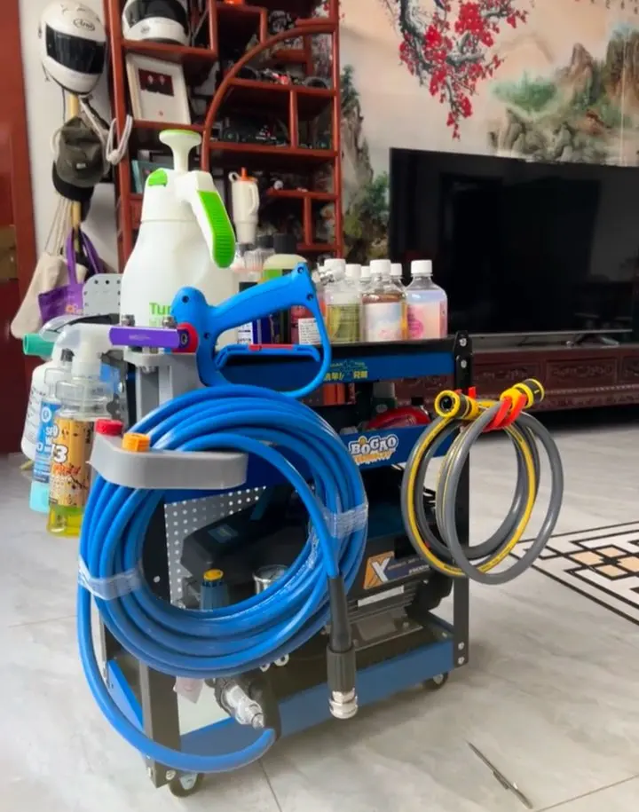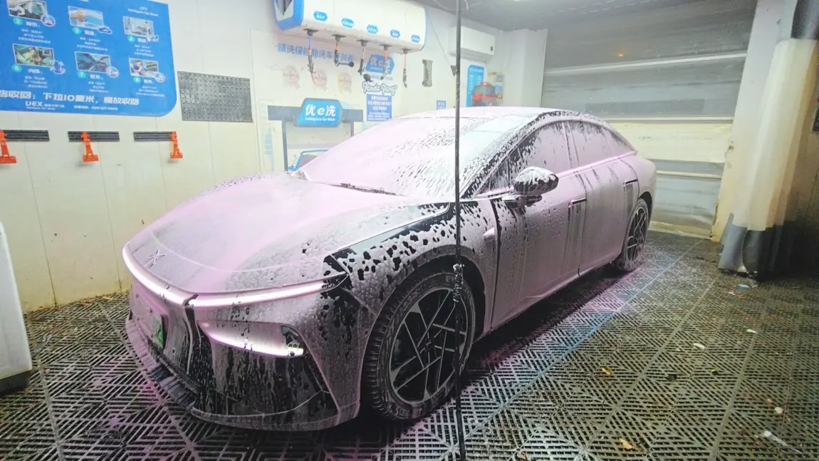 我拎着水枪绕着车冲,黑色漆面被水打湿,亮得能映出人影。蹲下身用小刷子抠轮毂缝隙里的泥沙,又拿药水擦玻璃上的水渍,耳朵里是dj,完全不用分心去想“车窗关没关严”“自动雨刮关没关”。以前开油车洗车,光是来回上车关这关那断电、关窗锁门就折腾好几趟,生怕水淋进车里,哪有现在这么省心。