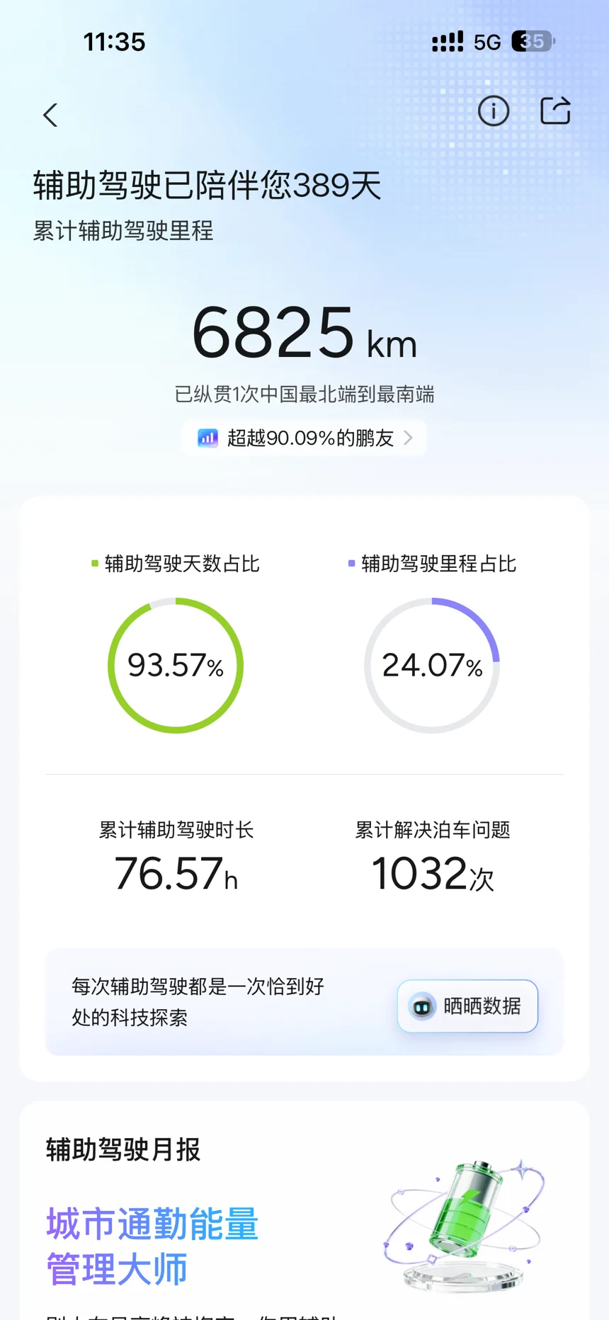 2025年,小鹏G6陪我走过2.6万多公里旅程,其中智驾里程0.6万公里,成为最靠谱的出行伙伴。全年平均能耗稳定在12.8kWh/100km,800V高压平台加持下,补能18分钟就能续航350km,长途出行毫无焦虑。