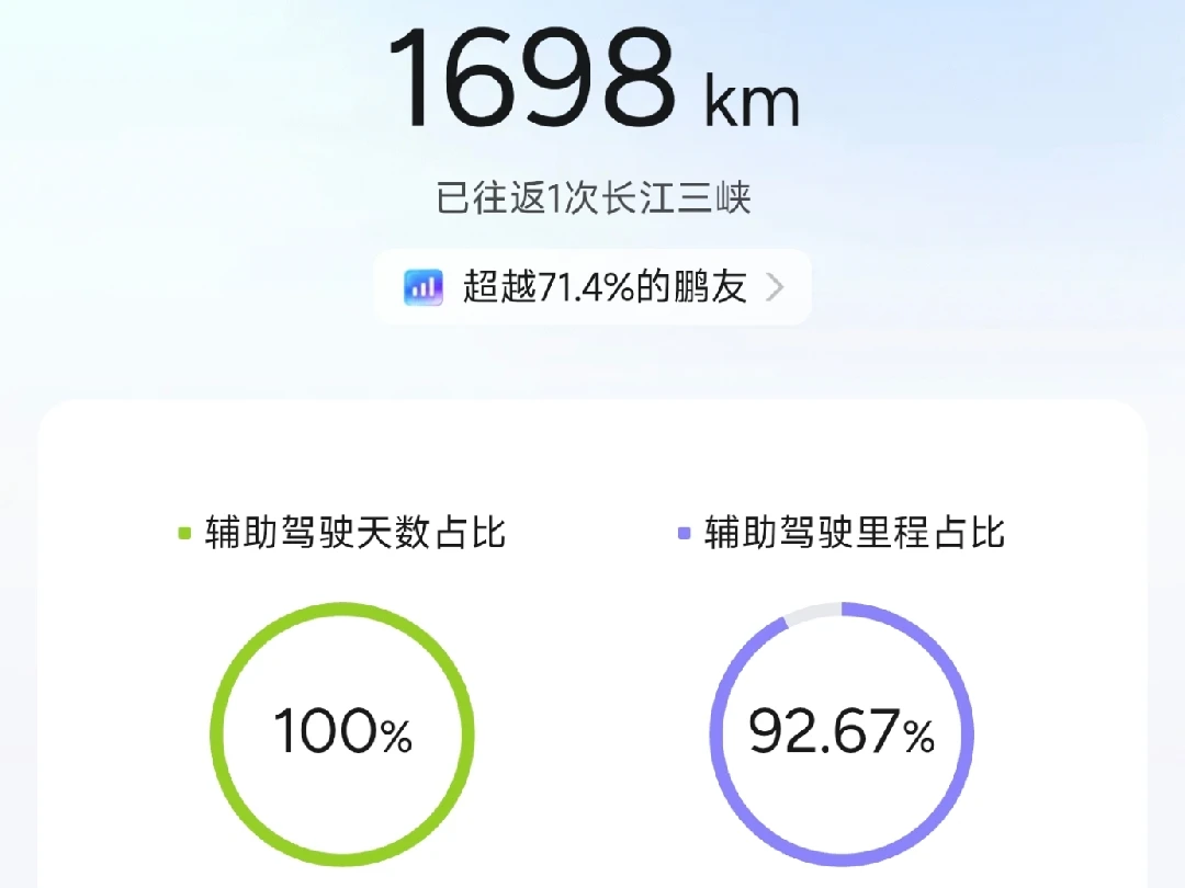 11月底提车,到现在总里程1800公里,辅助驾驶NGP里程占比90%;