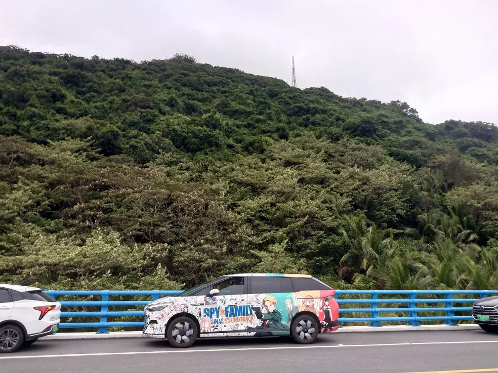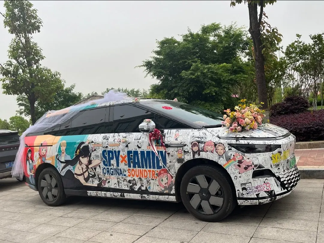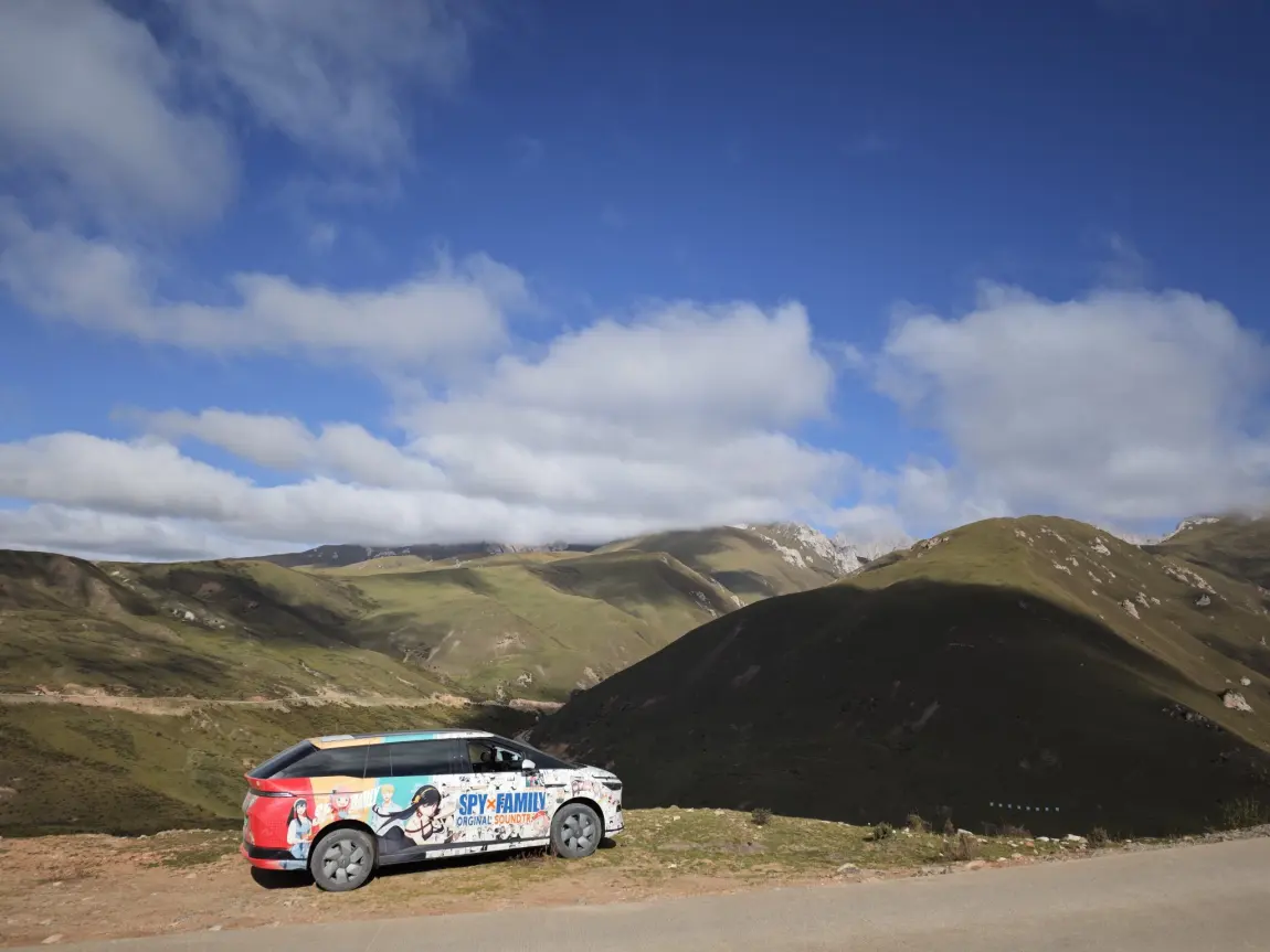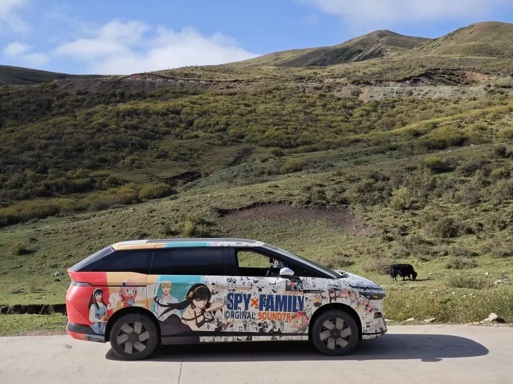 今年最得意的,必须是给X9贴的《间谍过家家》全车身漫画膜。车头阿尼亚的星星眼、车侧黄昏特工组的全家福、车尾约尔太太的杀手pose,每次停在路边都能收获路人“哇塞”的眼神。翻相册最爱的几张车照:一张是在川西草原,它跟低头干饭的牦牛同框,漫画风撞上旷野感,像从二次元穿到了现实;另一张是在小区楼下,我捧着刚捡的桂花凑到镜头前,暖黄花瓣衬着阿尼亚的粉头发,连空气都甜得冒泡。